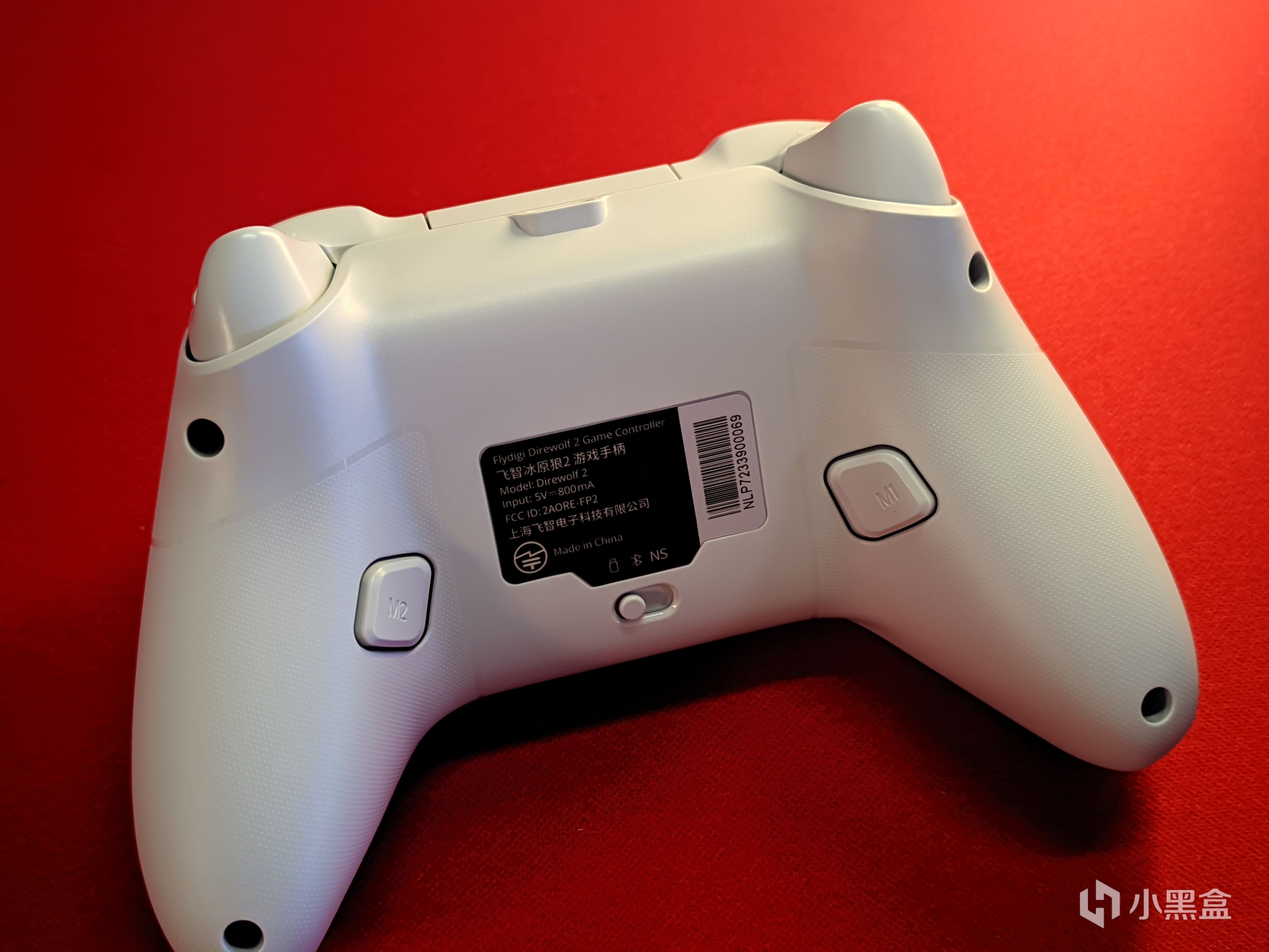 翻到背面,最上面就是我说的从新开模设计后的顶部以及一堆霍尔扳机,这对霍尔扳机的表现还是很不错的,并没有出现有些手柄的非线性表现,也就是前面快后面慢的情况,整体为线性设计,背部依然是两颗背键,说实话在如今的四背键甚至六背键的情况下还是有些不够用的,而这次的模式切换缩减到了3种,接收器 蓝牙 NS,有线模式被归类在其中了,在什么档位有线使用就是什么模式。