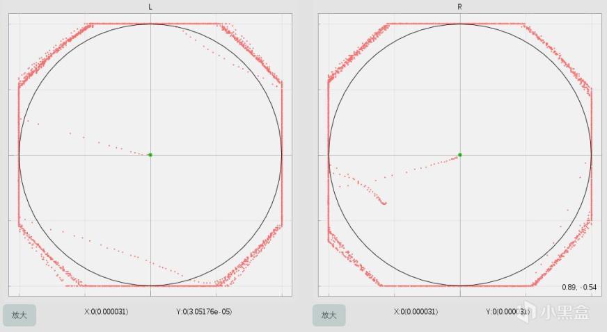 手柄摇杆的调教方式为八边形调教,这点也算正常,毕竟正圆形对于双霍尔手柄来说并不是一个好选择,这会导致两者相互影响,而八边形调教则可以更好的避免这种情况。