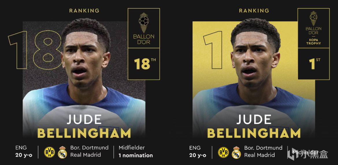 中场超级新星&巨星贝林厄姆则是排在金球奖第18名,同时作为皇马队史首次获得了2023年科帕奖,科帕奖旨在评选全世界21岁以下的最佳球员,与金童奖的差别在于科帕奖也面向欧洲以外的球员。贝皇队友维尼修斯,则是获得苏格拉底奖!