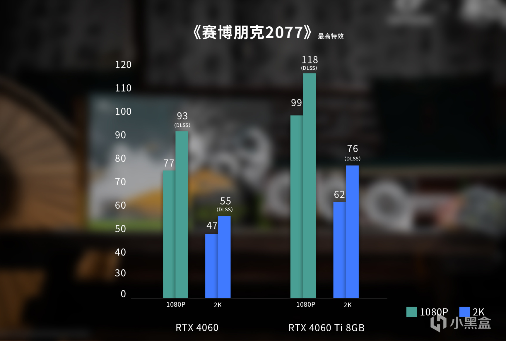 一款性能强大的显卡也是发挥玩家实力的条件之一,本次首发的雾山五行联名硬件包含iGame GeForce RTX 4060 雾山五行定制版OC 8GB、iGame GeForce RTX 4060 Ti 雾山五行定制版OC 8GB、和iGame GeForce RTX 4060 Ti 雾山五行定制版OC 16GB三款RTX 4060家族系列显卡,均掌握应对全场景的实力。对于玩家而言游戏测试是重点关注项目,以下图为例,分别测试了RTX 4060及RTX 4060 Ti 8GB在《赛博朋克2077》的帧数情况。在1080P/2K分辨率中,RTX 4060的表现为77/47帧,而RTX 4060 Ti 8GB表现为99/62帧,在开启NVIDIA DLSS后,RTX 4060在1080P及2K的表现为93/55帧,而RTX 4060 Ti 8GB为118/76帧,得到了大幅度提升!除了《赛博朋克2077》外,两款产品在DLSS 3/DLSS 3.5技术的加持下均能够流畅应对诸如《心灵杀手 2》、《瑞奇与叮当:时空跳转》、《传送门:序曲》RTX版、《暗黑破坏神IV》和即将发布的《使命召唤:现代战争 3 2023》等时下3A大作,玩家可根据自身的游戏需求进行硬件装备的选择。