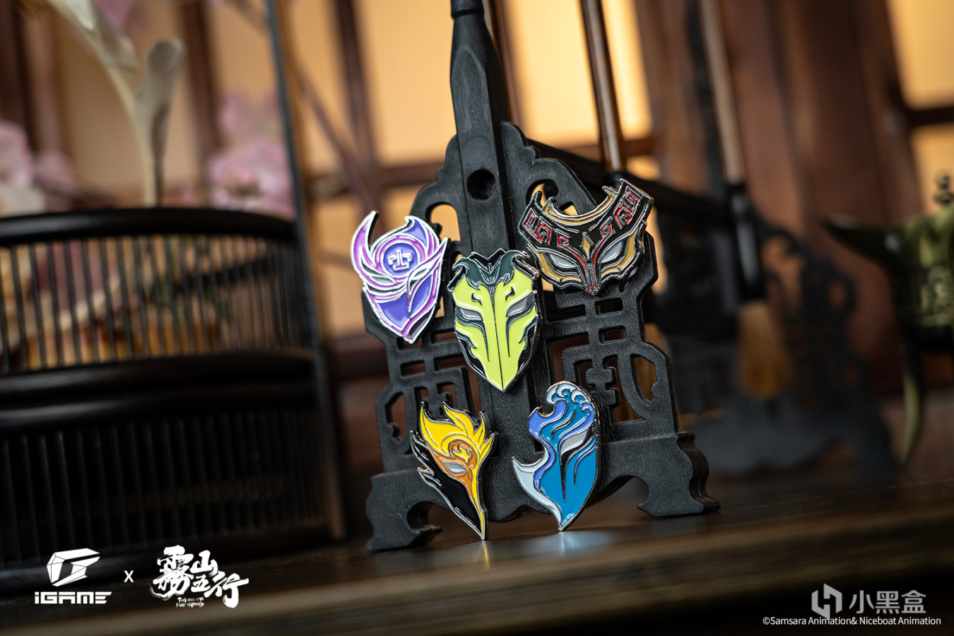 作为RTX 40系列的首款联名产品,iGame GeForce RTX 4060 FAMILY 雾山五行系列显卡无论在包装礼盒或是内部配件上都下足了功夫。当玩家开启包装的瞬间就能够被联名显卡所吸引,而隐藏在显卡下方的则是产品附赠的“五行面具徽章”。含五枚(金行、木行、水行、火行、土行)面具徽章,徽章带有磁吸功能可吸附于铁磁物件中,可玩性极佳。