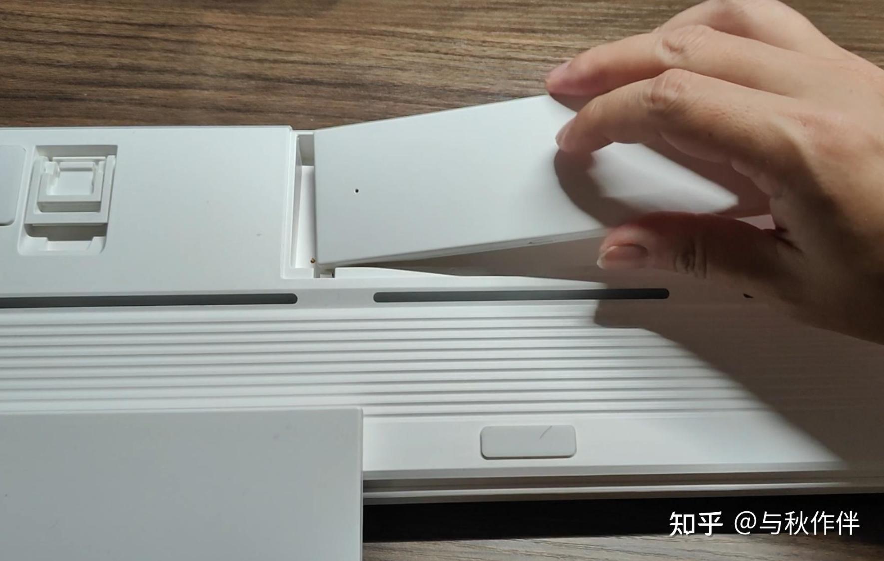旋钮部分和旋钮功能切换键和游侠2 RX上是一样的,实用性很强。PBT键帽也基本是一样的。就连整个高度都大差不差。区别就是这款是常规机械轴的版本。而且这次推出的线性轴雪武白轴的整体评价很不错,配得上是一线轴体的水准了,对比游侠1代无线上的山楂红,按压质感也明显提升。