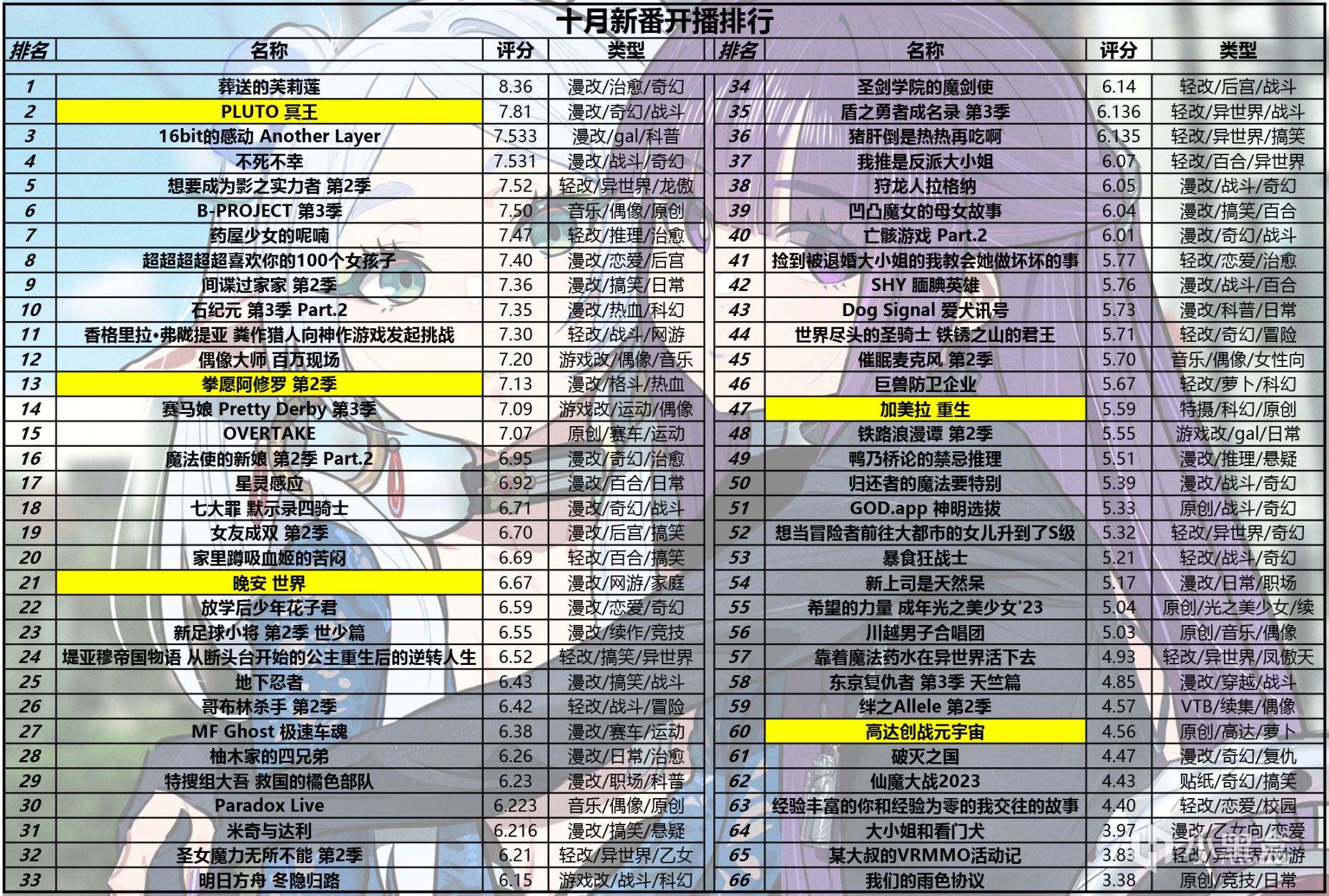那麼這一衆番劇的評分到底如何呢?是否還有我們未注意到的冷門佳作呢?下面就讓本臺爲你揭曉答案吧!