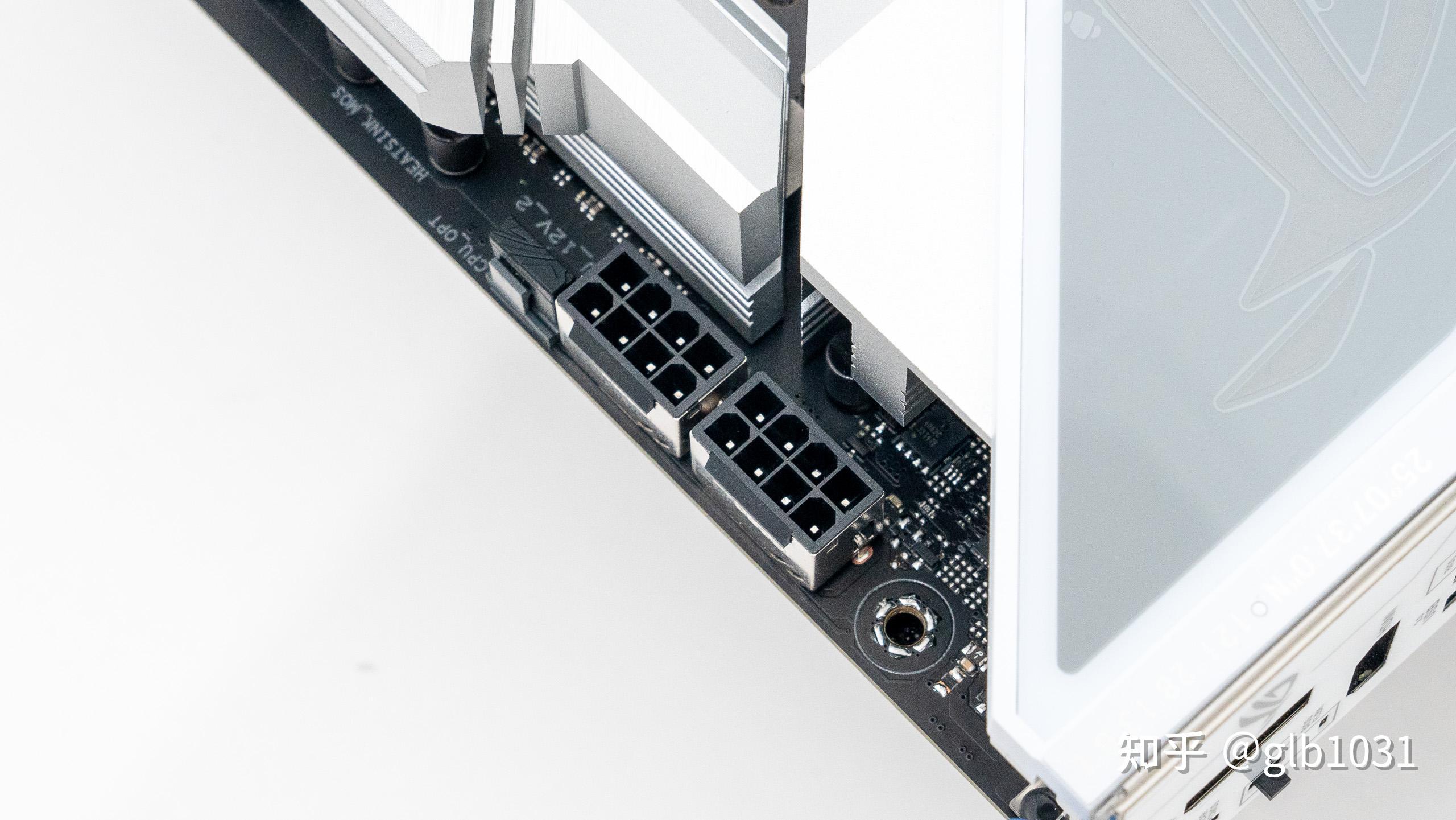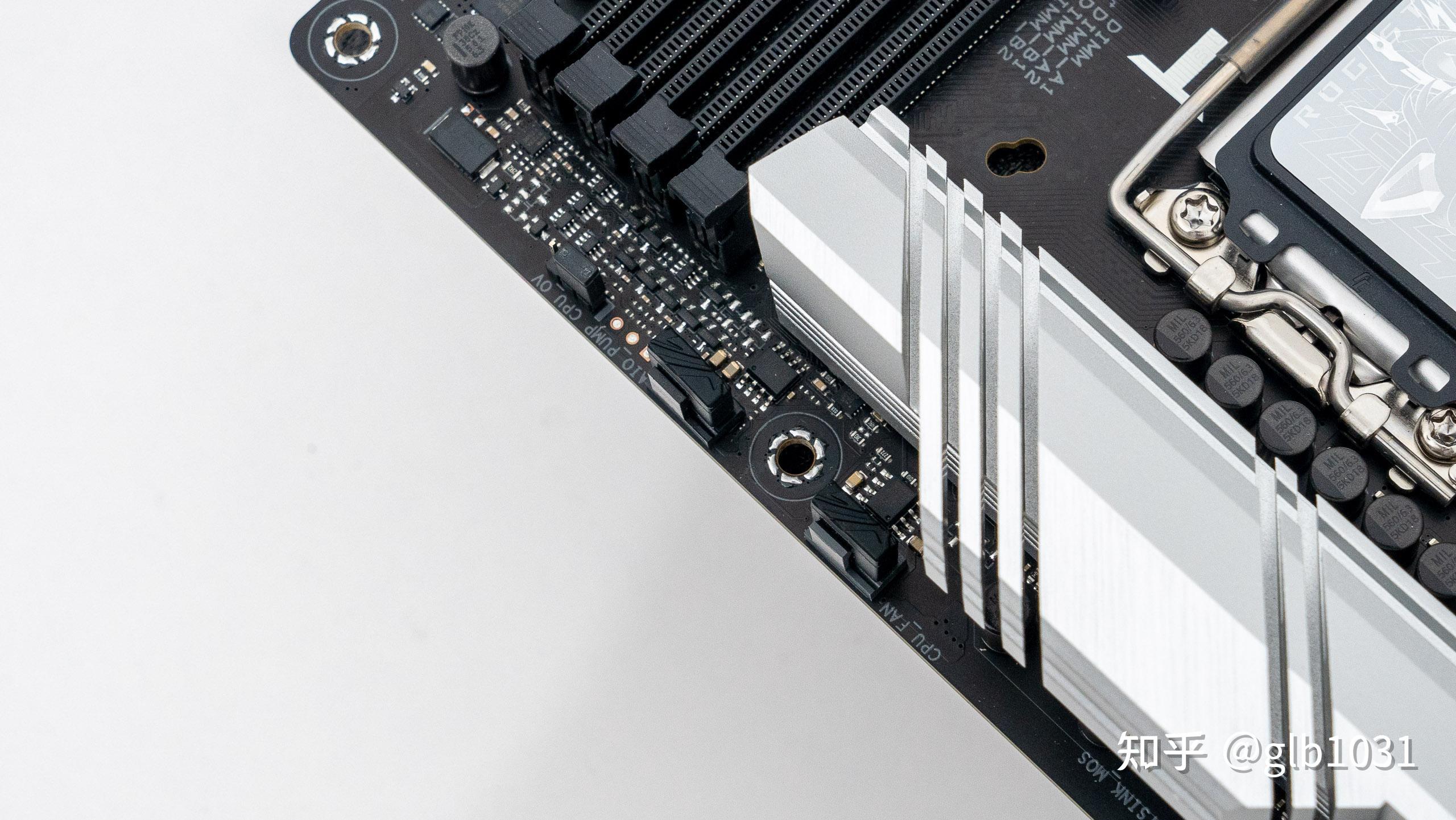 這次看到一個細節,主板頂部的三個4Pin 風扇接口還設計了ROG 元素的軟橡膠蓋子。
