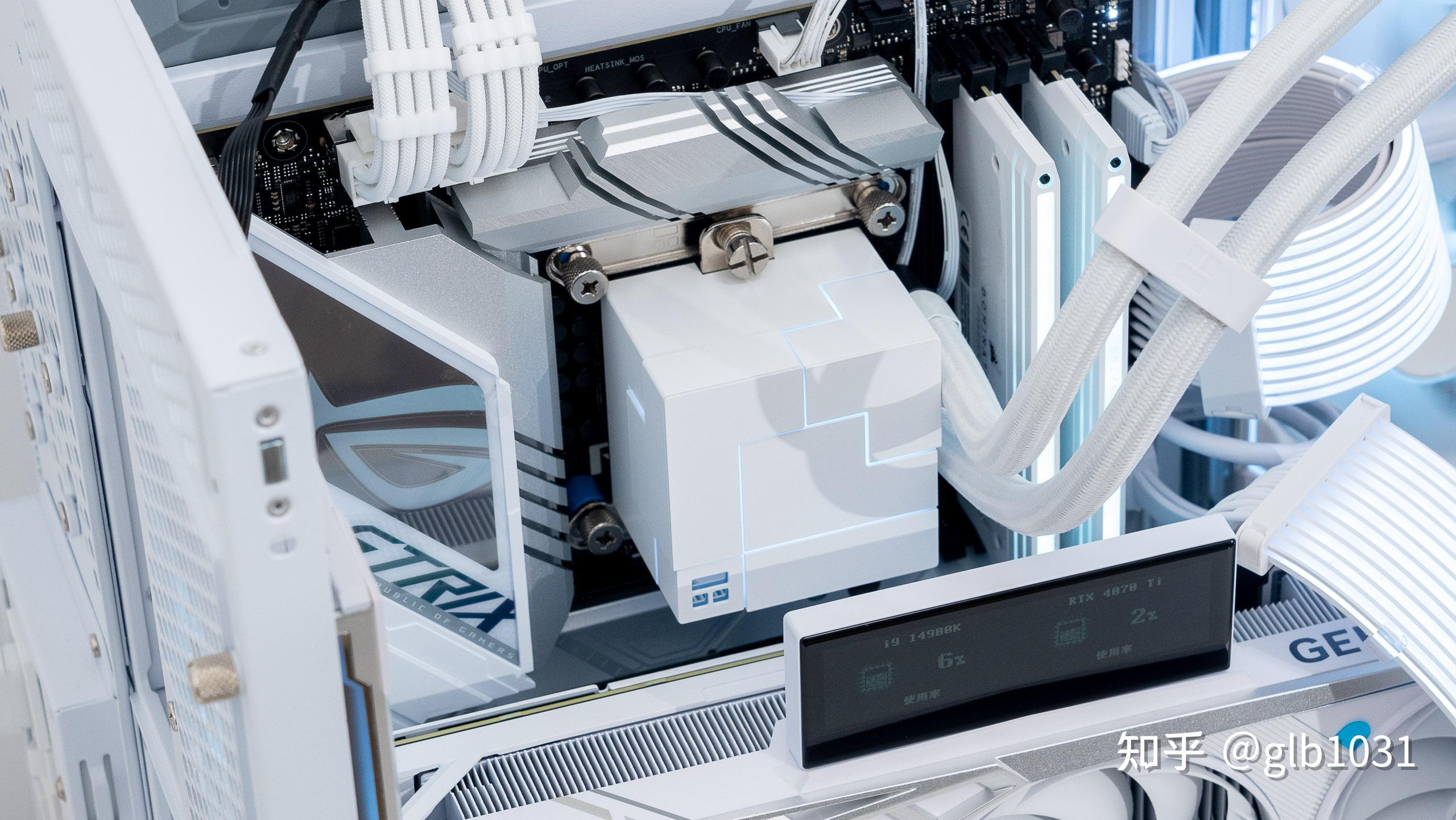 散熱選擇的是白色的利民(Thermalright)CORE MATRIX 360 WHITE 幻芯矩陣 ,整體採用白色矩陣幻視風全金屬冷頭設計,內部是獨立的CORE V1.0 獨立水泵構架。預裝了利民自家的殿堂級的TL-K12 系列性能風扇,風扇和冷排採用預裝設計。利民還幫玩家提前做了理線規劃,通過附送的水管卡扣上的理線槽還能實現風扇線材理線。