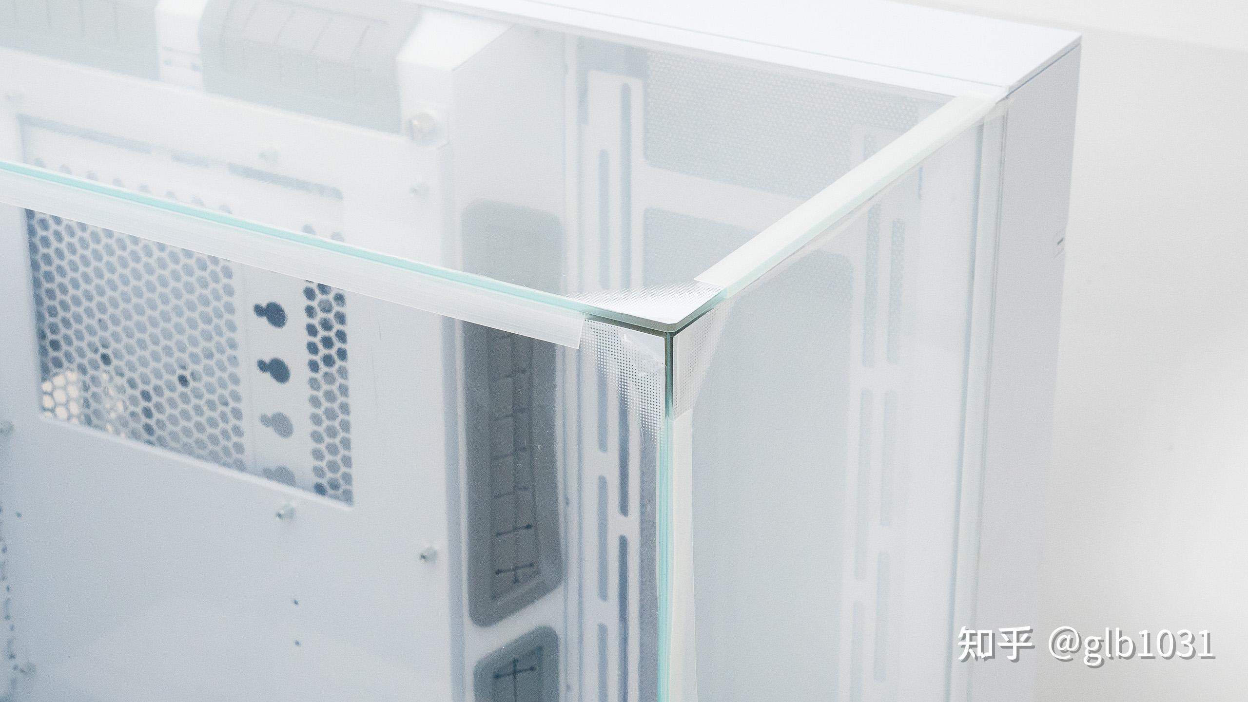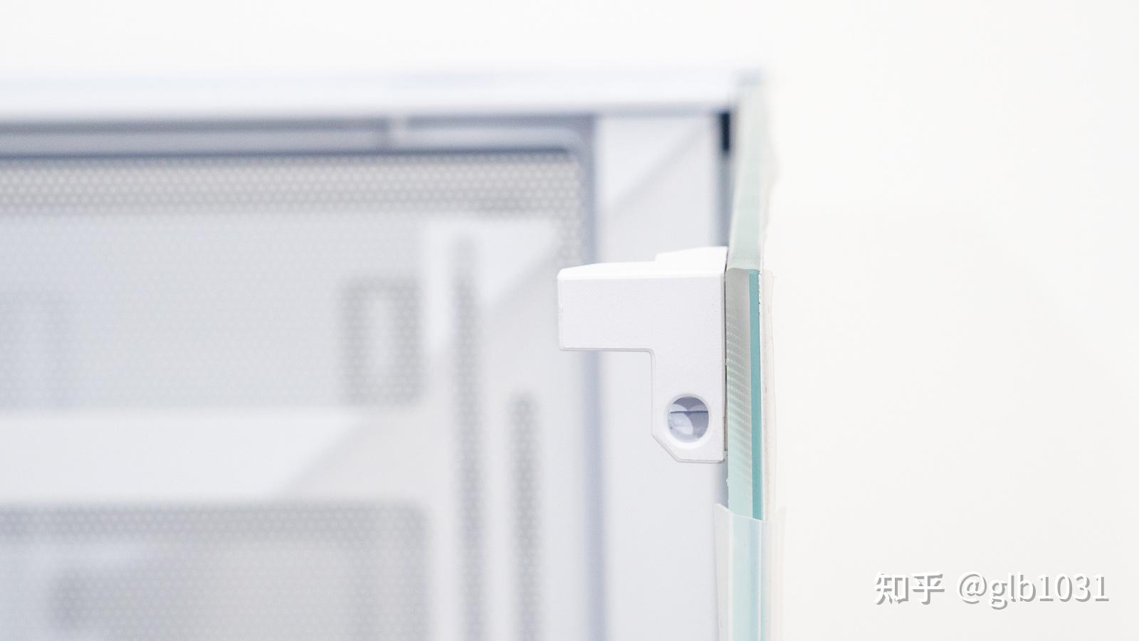 機箱頂部玻璃採用卡扣設計,橫向拆裝。左側的玻璃面板則是類似榫卯的按壓固定方式。玻璃的接觸面也都做了斜角處理,密閉性會更好。