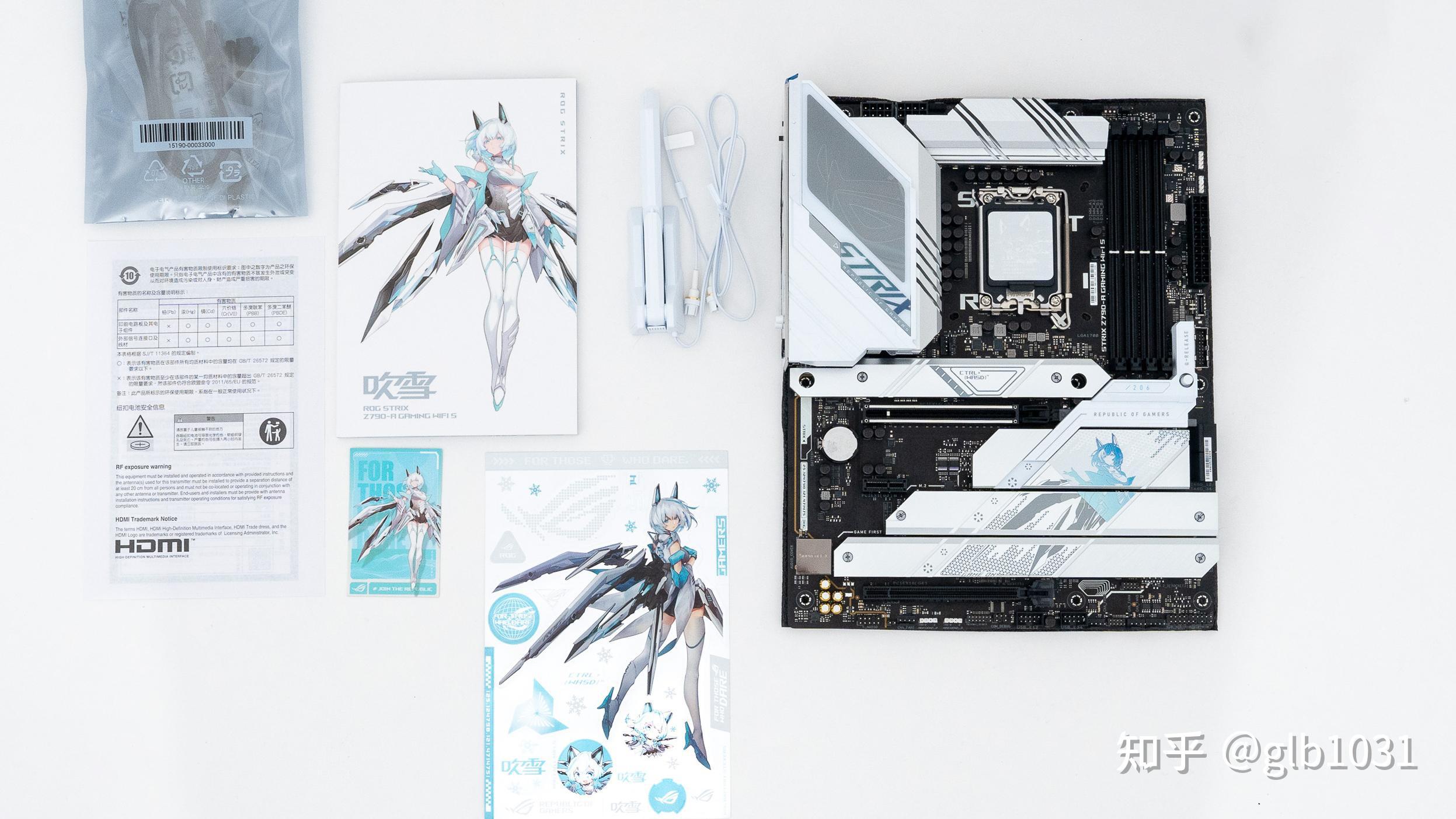 附件一覽,新的貼紙顏值更高了,整體附件也都是白色爲主。當然什麼時候能有ITX 尺寸的吹雪系列主板就更好了。