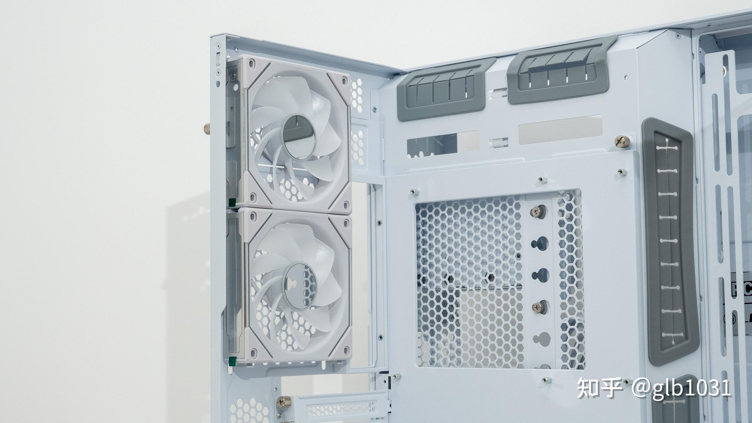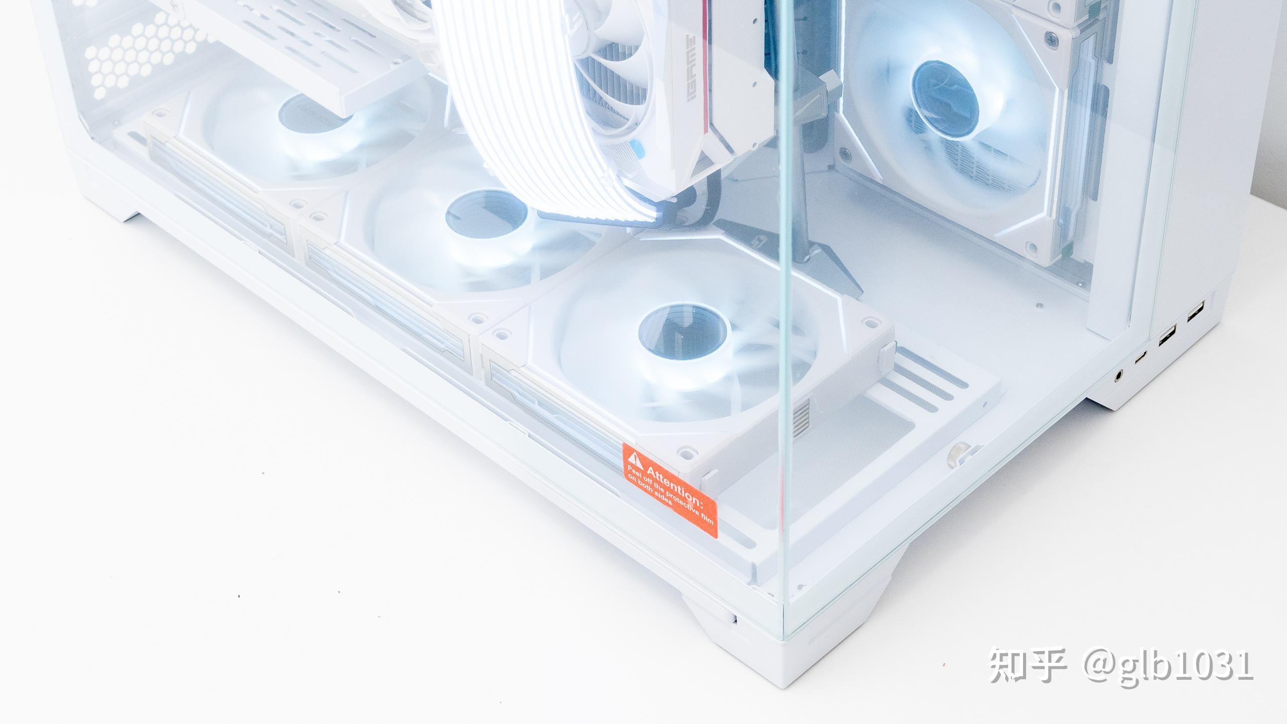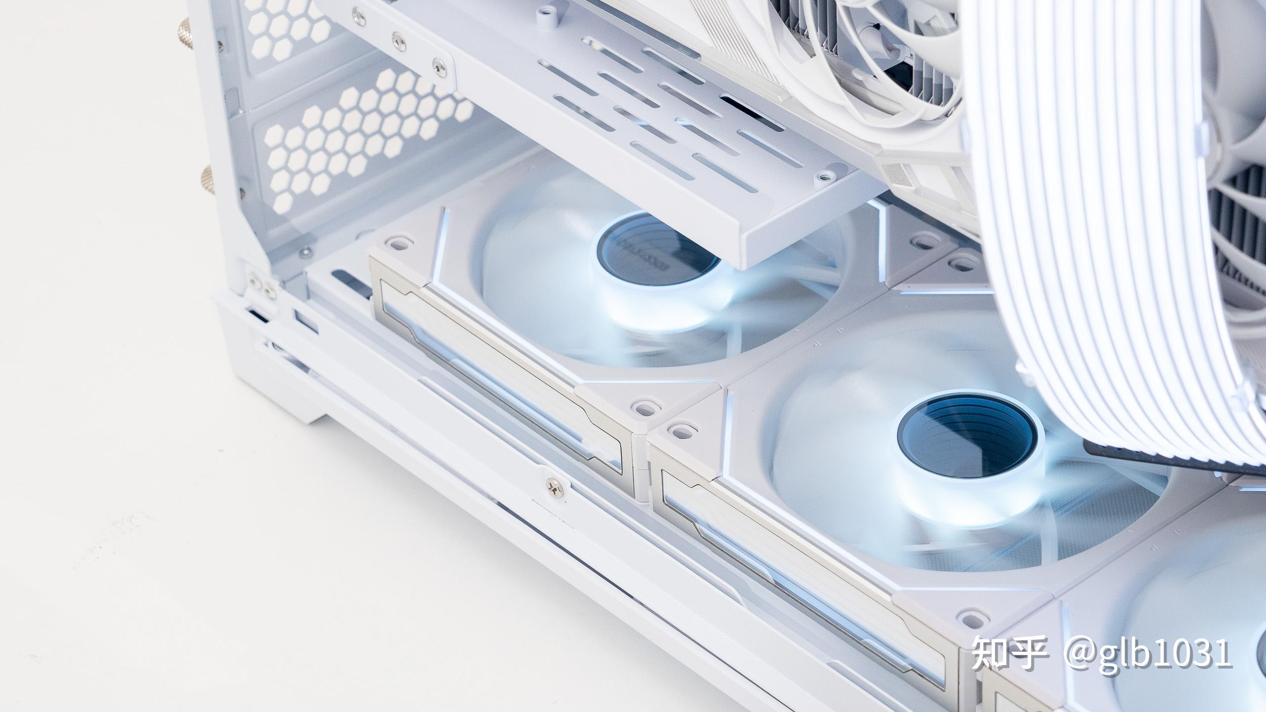 風扇部分,聯力LIANLI三代積木風扇幻鏡風扇的顏值確實十分好看。細節上聯力如果把白色的積木風扇連接線也換成白色的就更細節了。
