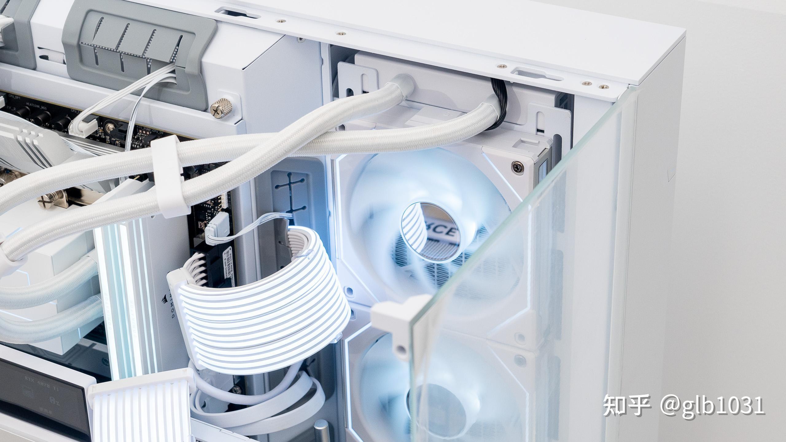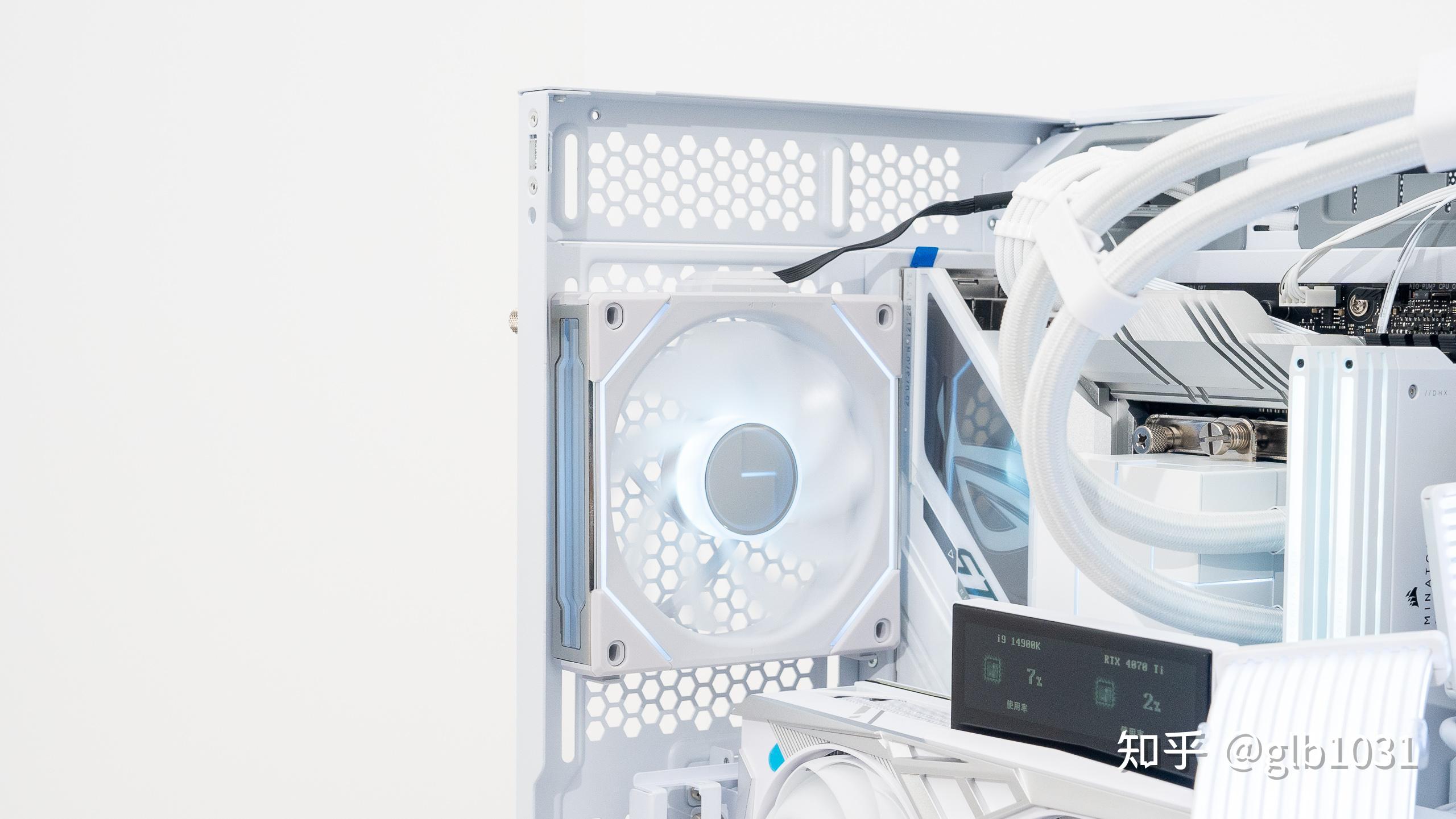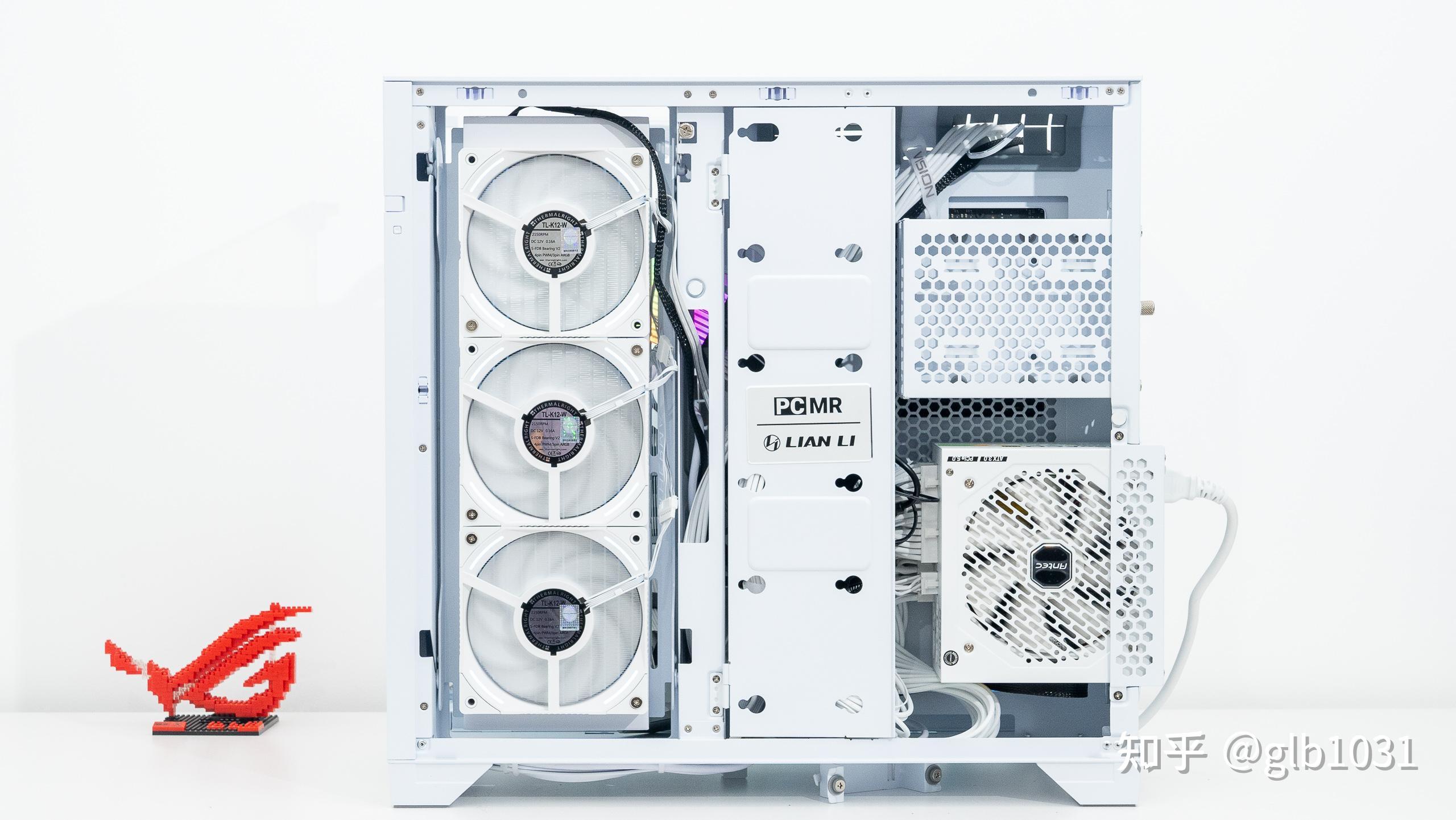 風扇部分,聯力LIANLI三代積木風扇幻鏡風扇的顏值確實十分好看。細節上聯力如果把白色的積木風扇連接線也換成白色的就更細節了。