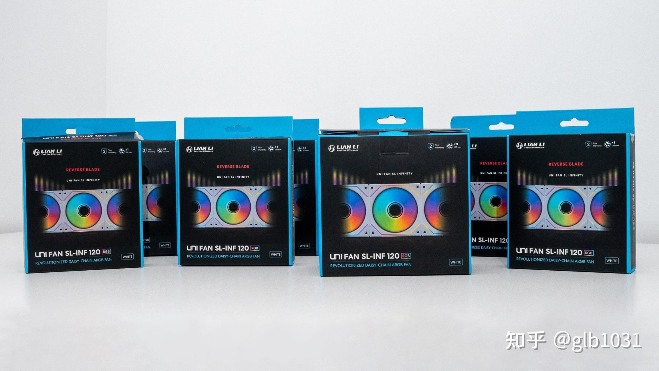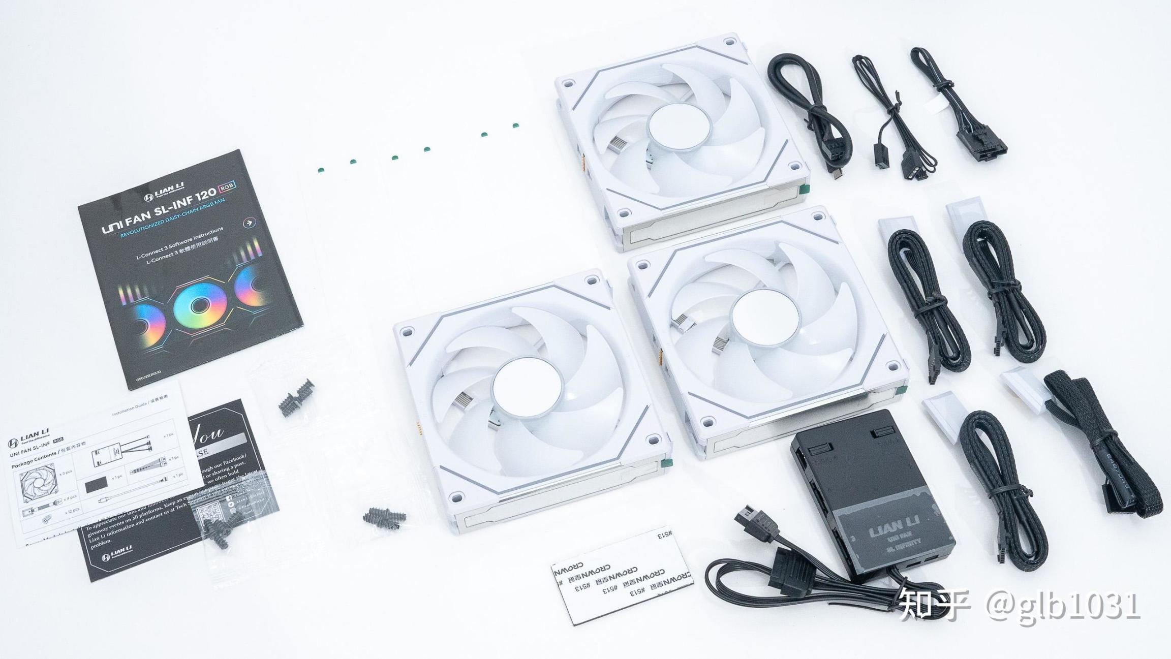 海景房裝機自然少不了風扇了,這裏搭配的聯力 LIANLI SL120 Infinity 幻鏡 Whtie 積木3代風扇,一盒三顆帶控制器的正轉版本,以及另外的 LIANLI SL120 Infinity 幻鏡 Whtie 積木3代風扇反轉版本。