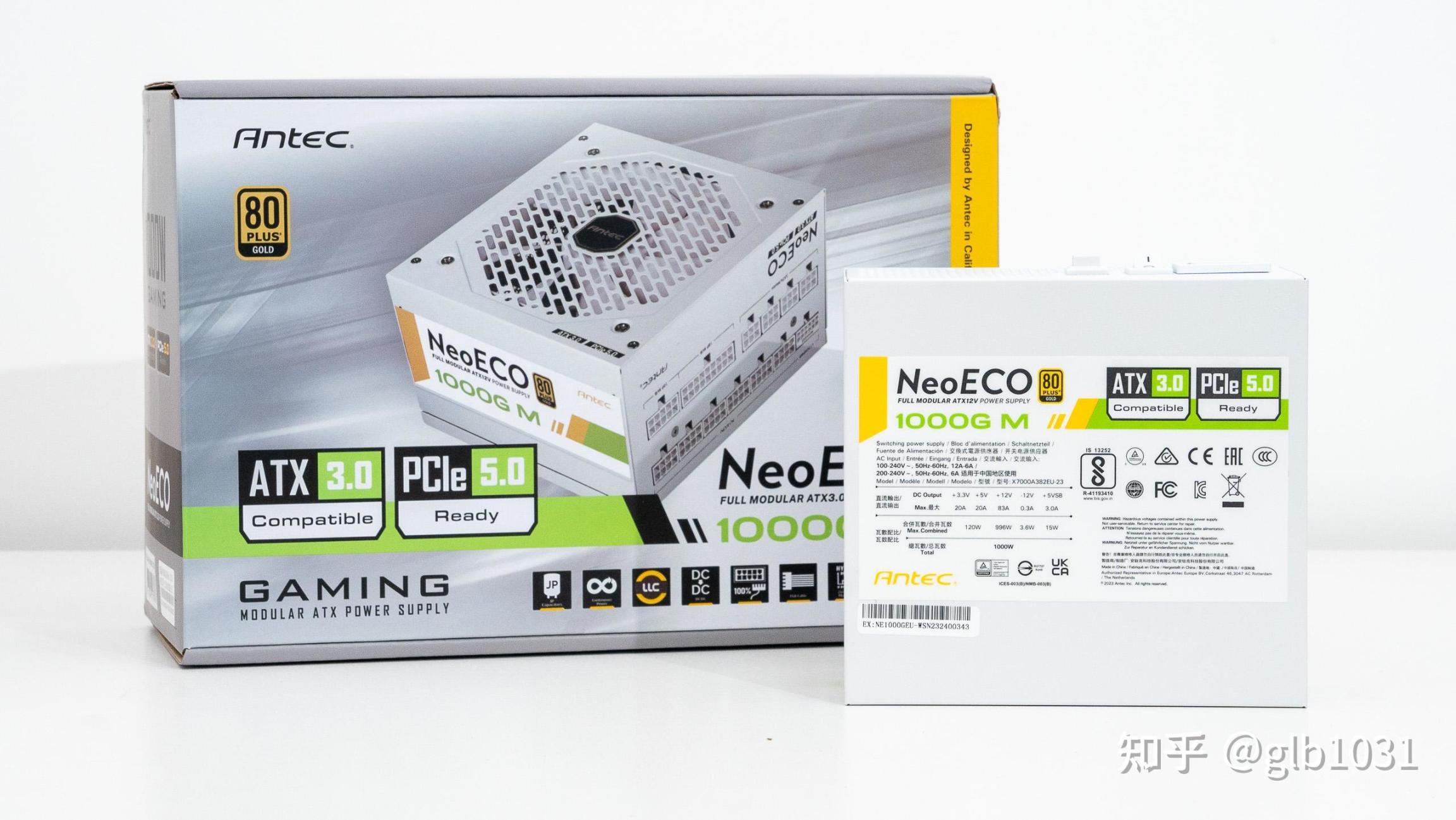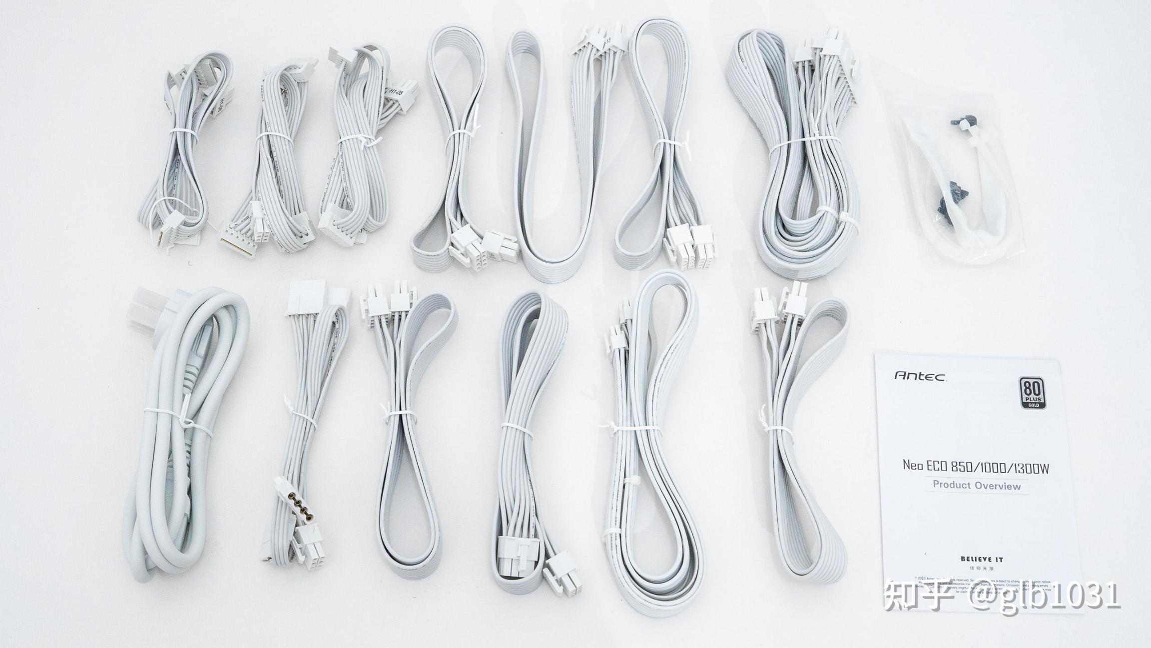 電源選擇的是白色的安鈦克的NE1000 全模組金牌電源,支持ATX 3.0 標準,原生PCIe 5.0 。而且1000W 的電源長度只有14CM,在提供穩定大功率輸出的同時良好的尺寸又爲兼容性提供保障。用料方面NE1000W電源採用了主動式PFC+全橋LLC諧振+同步整流+DC to DC架構,內置全日系電解電容。同系列還有黑色版本可選。