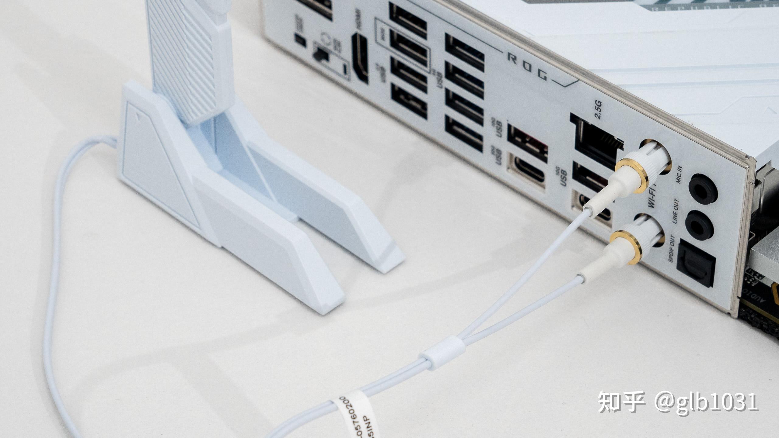 I/O 接口方面相比之前也有些變化,更多了兩個USB 2.0接口,不過音頻接口擴展少了。另外也注意到這次還有全新的易拆式天線,即插即用,還是白色塗裝,與主板裝甲配色一致。