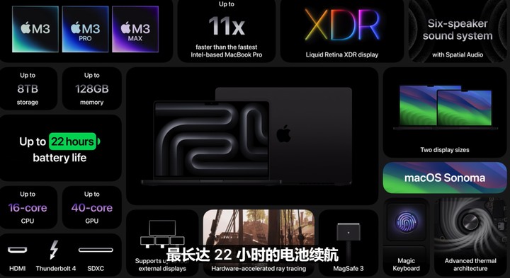 苹果公司在今天召开的新闻发布会上,在发布 M3、M3 Pro 和 M3 Max 三款处理器的同时,还推出了全新的 MacBook Pro 产品。