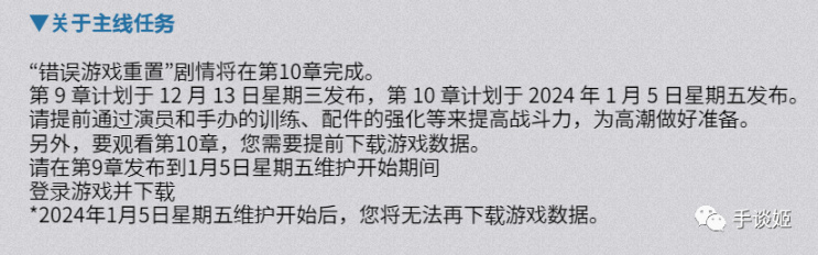 其一是,遊戲會將劇情更新完結在第10章節;