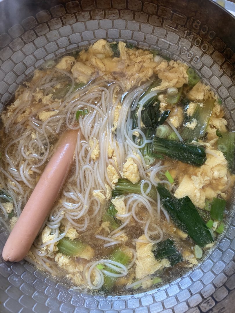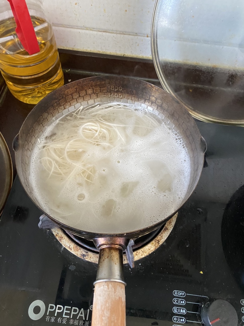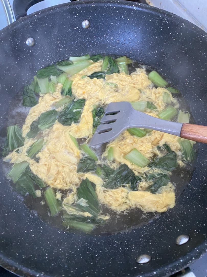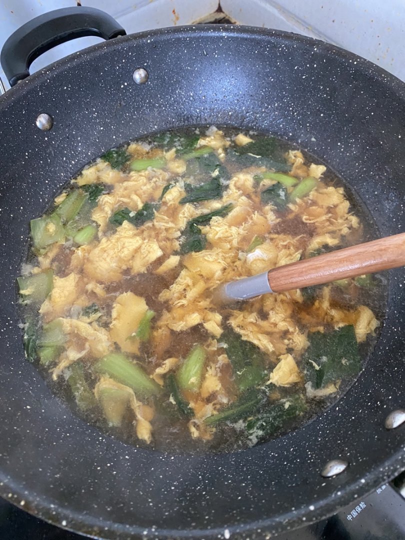 2.水开倒入蛋液,小火慢炖,然后尝尝咸淡加入适量白胡椒粉。