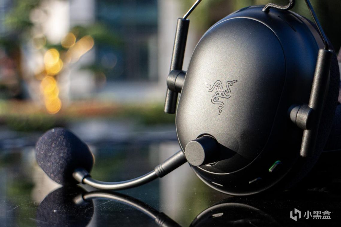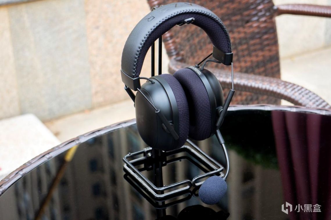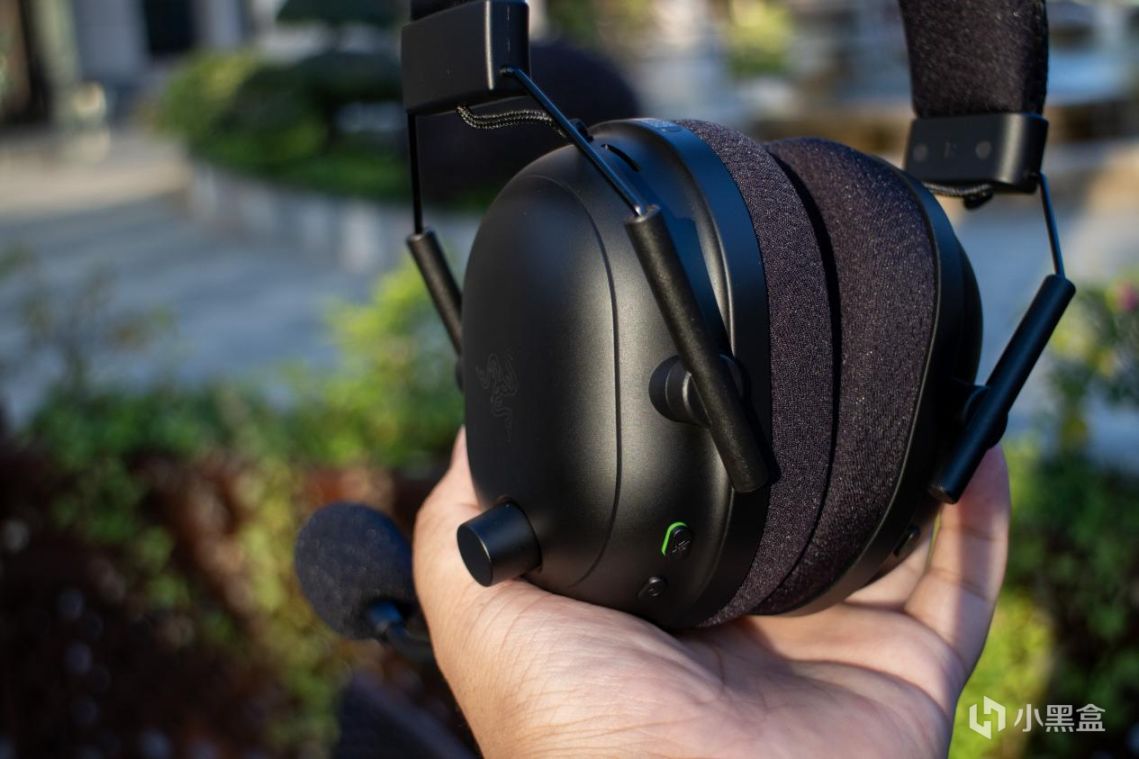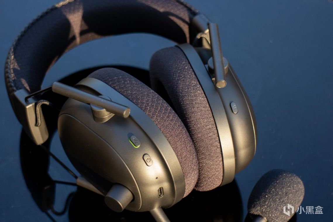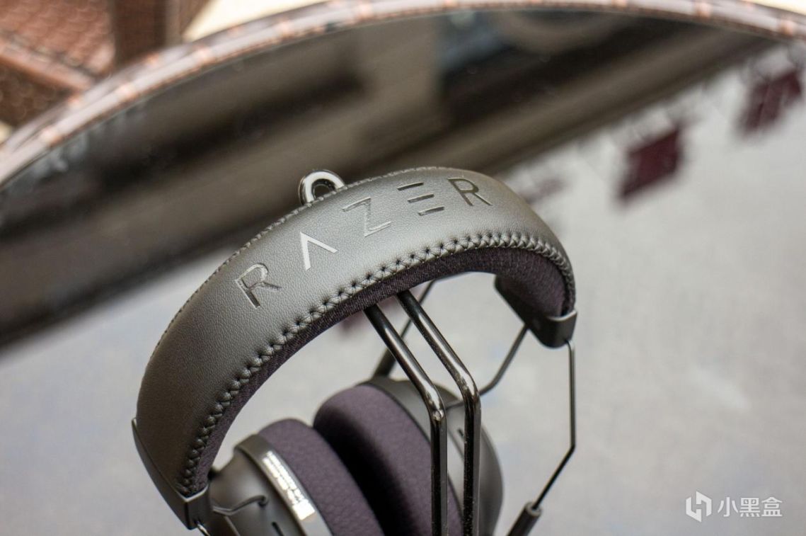 耳机通体为黑色,耳罩和头梁也是暗色调,而且整个耳机猛然看去,似乎并没有【雷蛇绿】元素,更没有RGB灯效(无线产品没有灯效可以理解)。