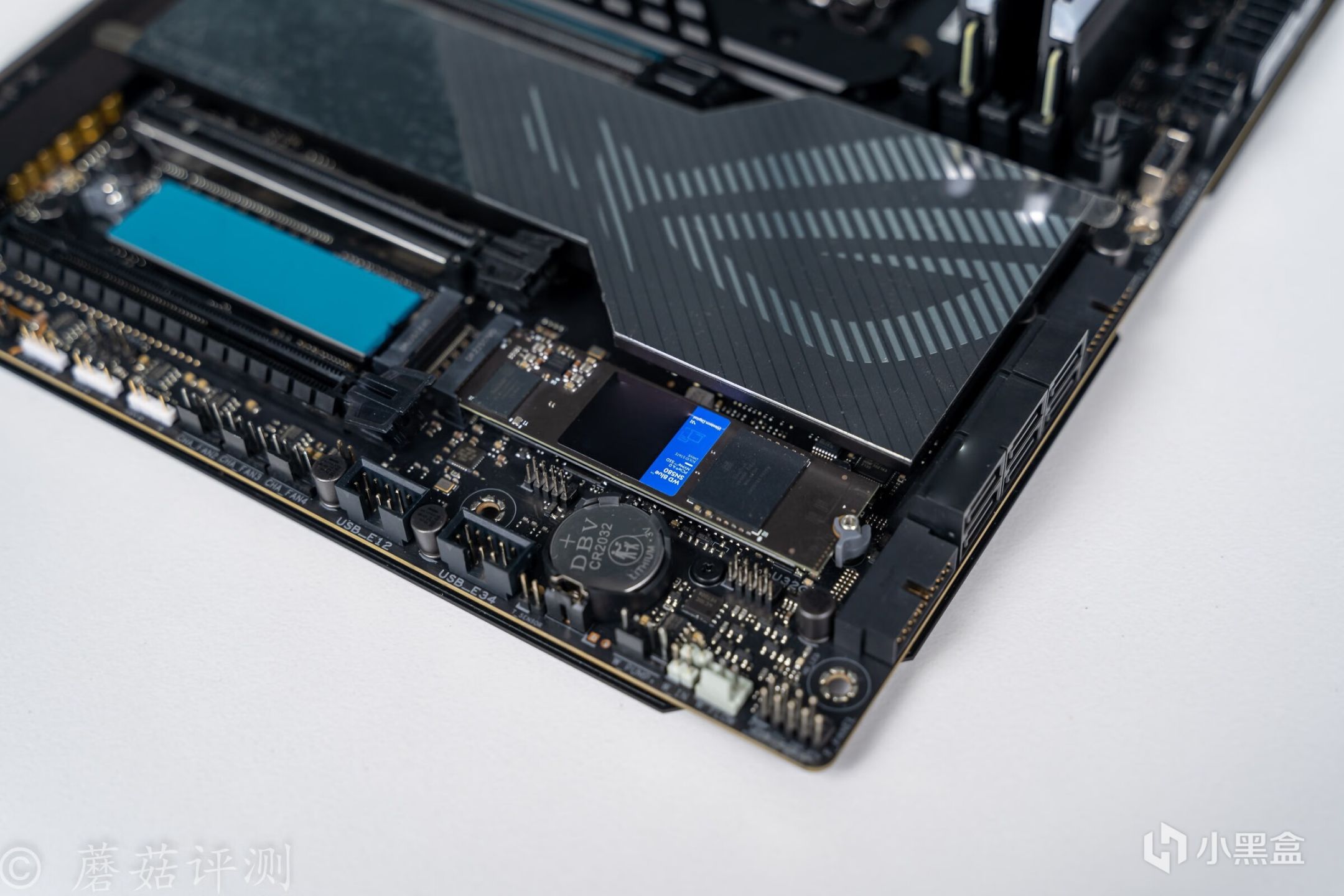 ▼固态这里直接装到左下角的位置,ROG这块主板的M2插槽均采用双面散热、快拆扣具。