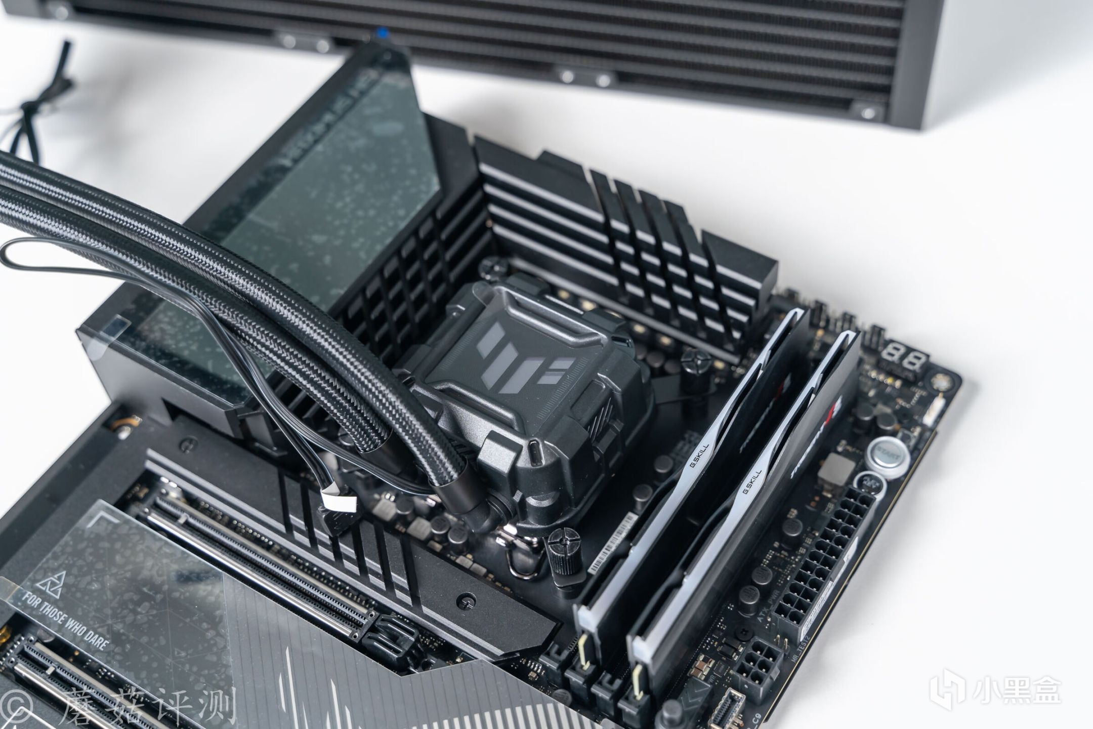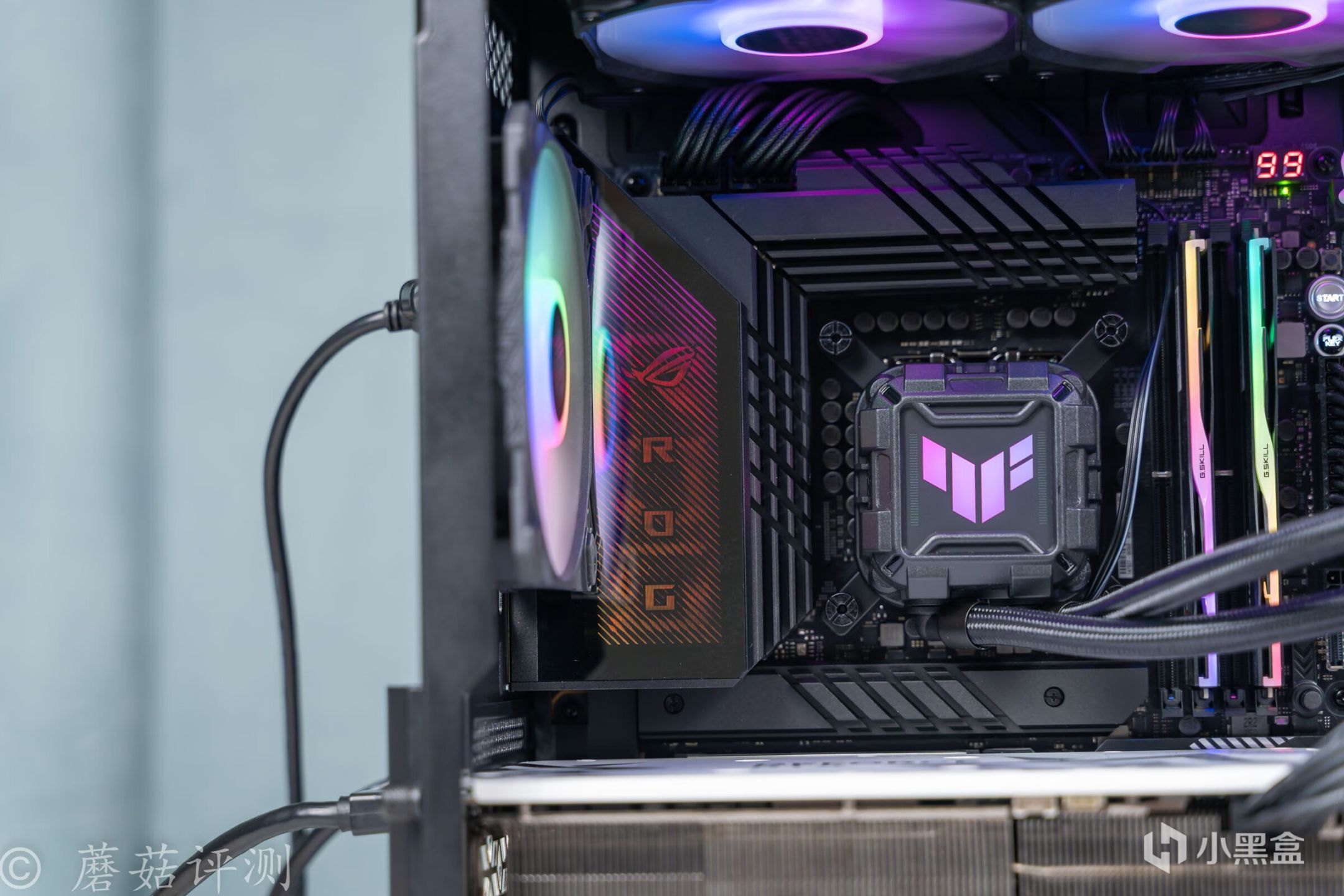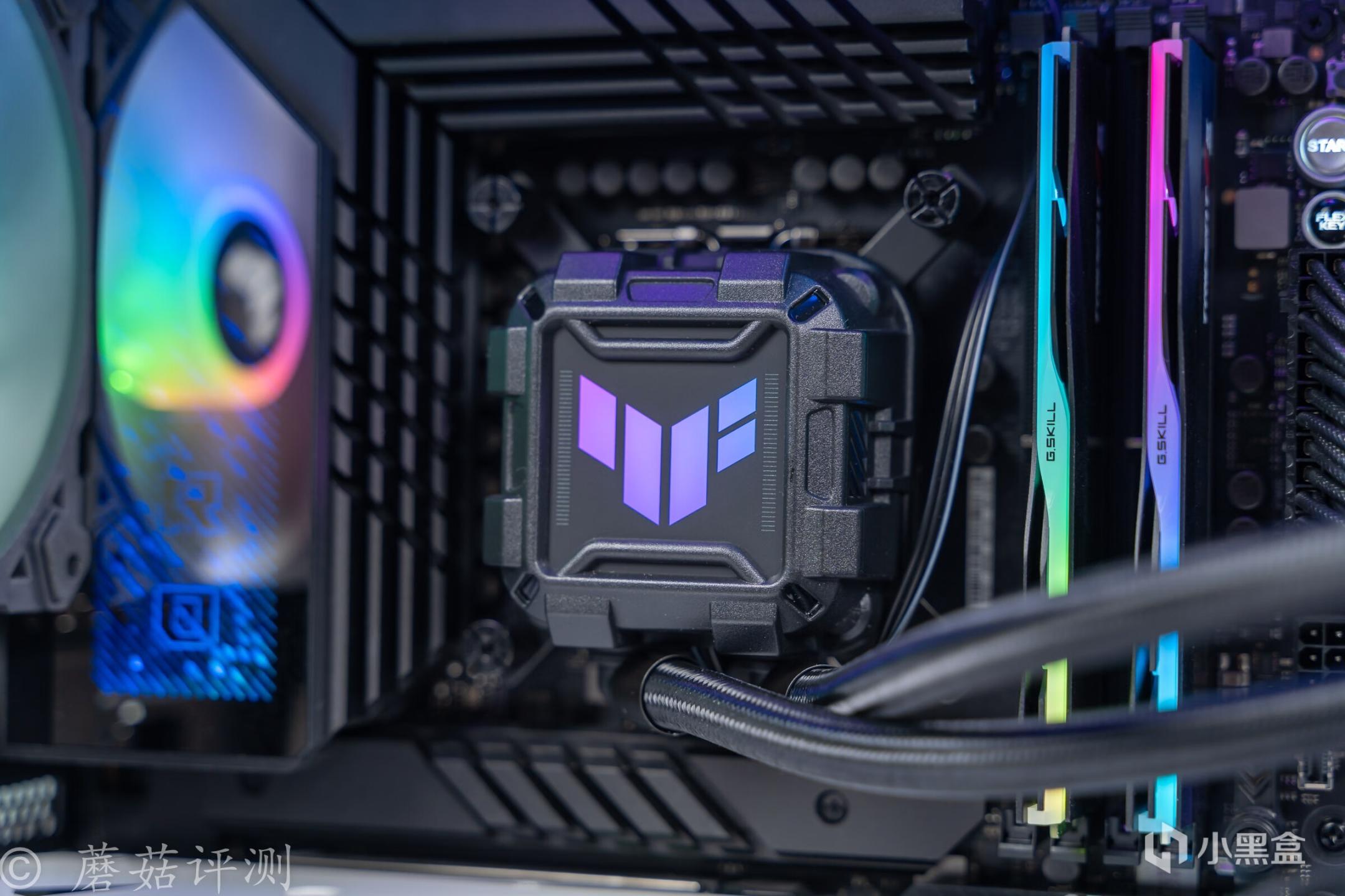 ▼水冷这里直接安装到主板上,采用下出水设计,TUF的LOGO正好是正的。