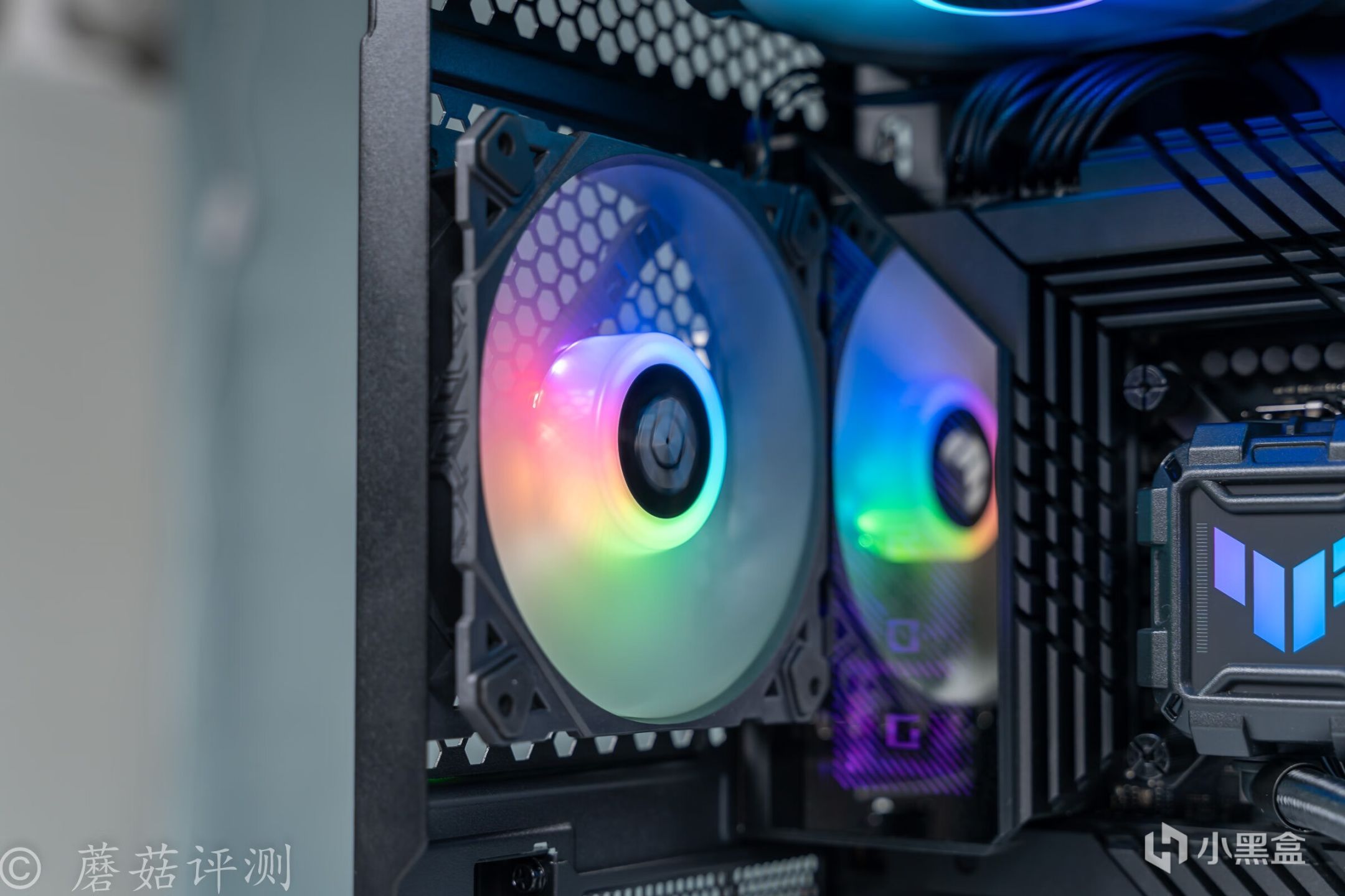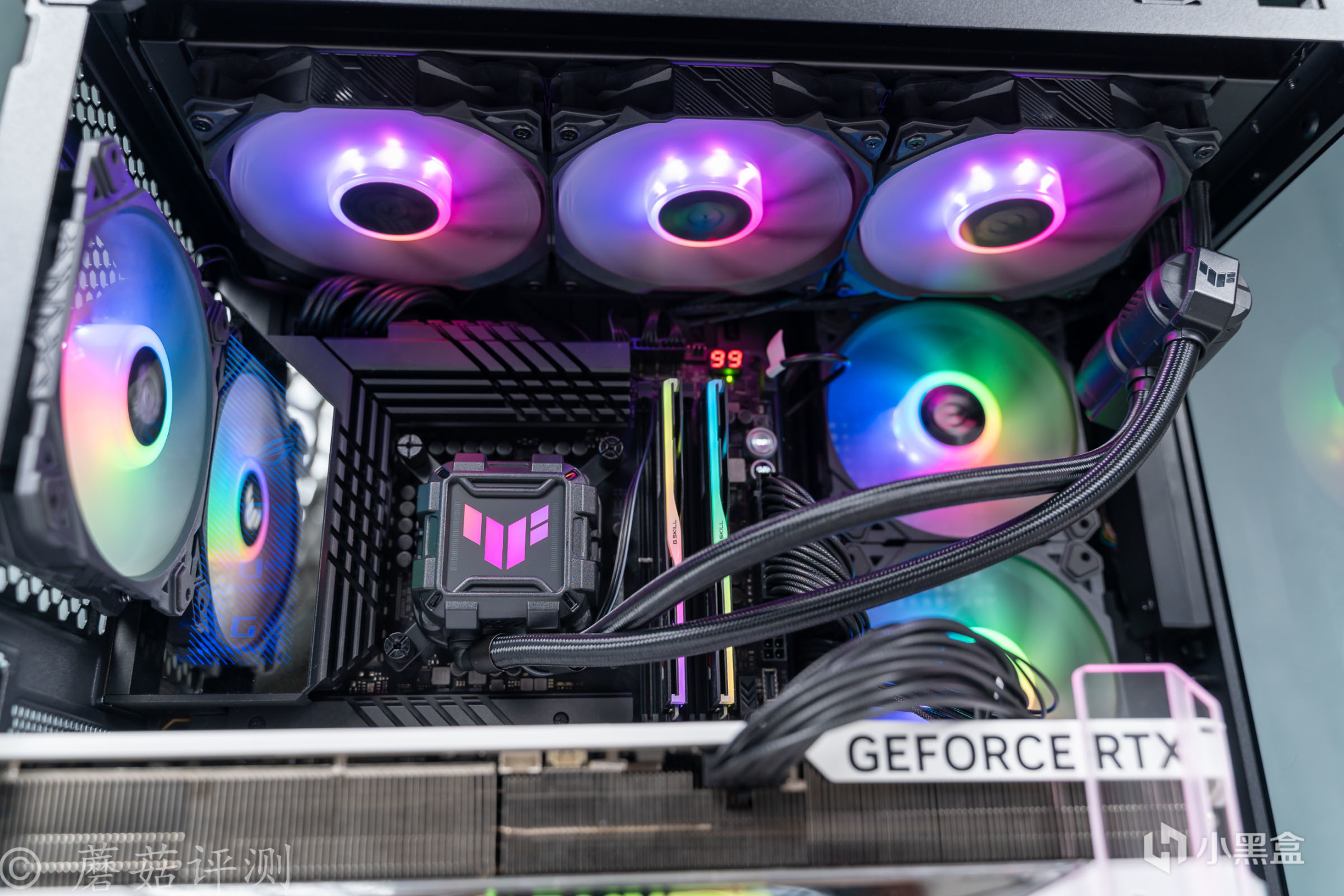 ▼机箱内部的各种硬件均有ARGB灯效,整体的颜值很漂亮。