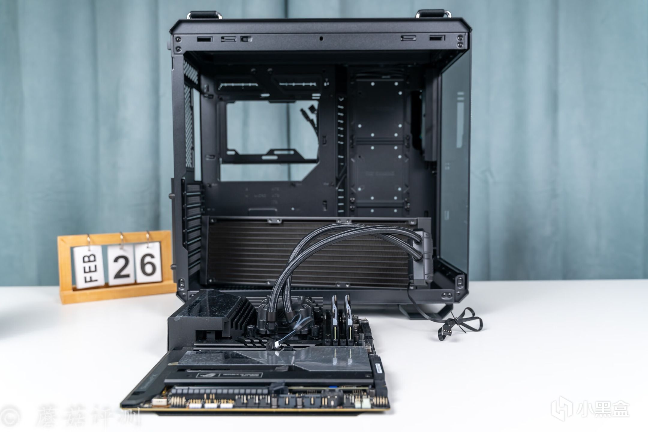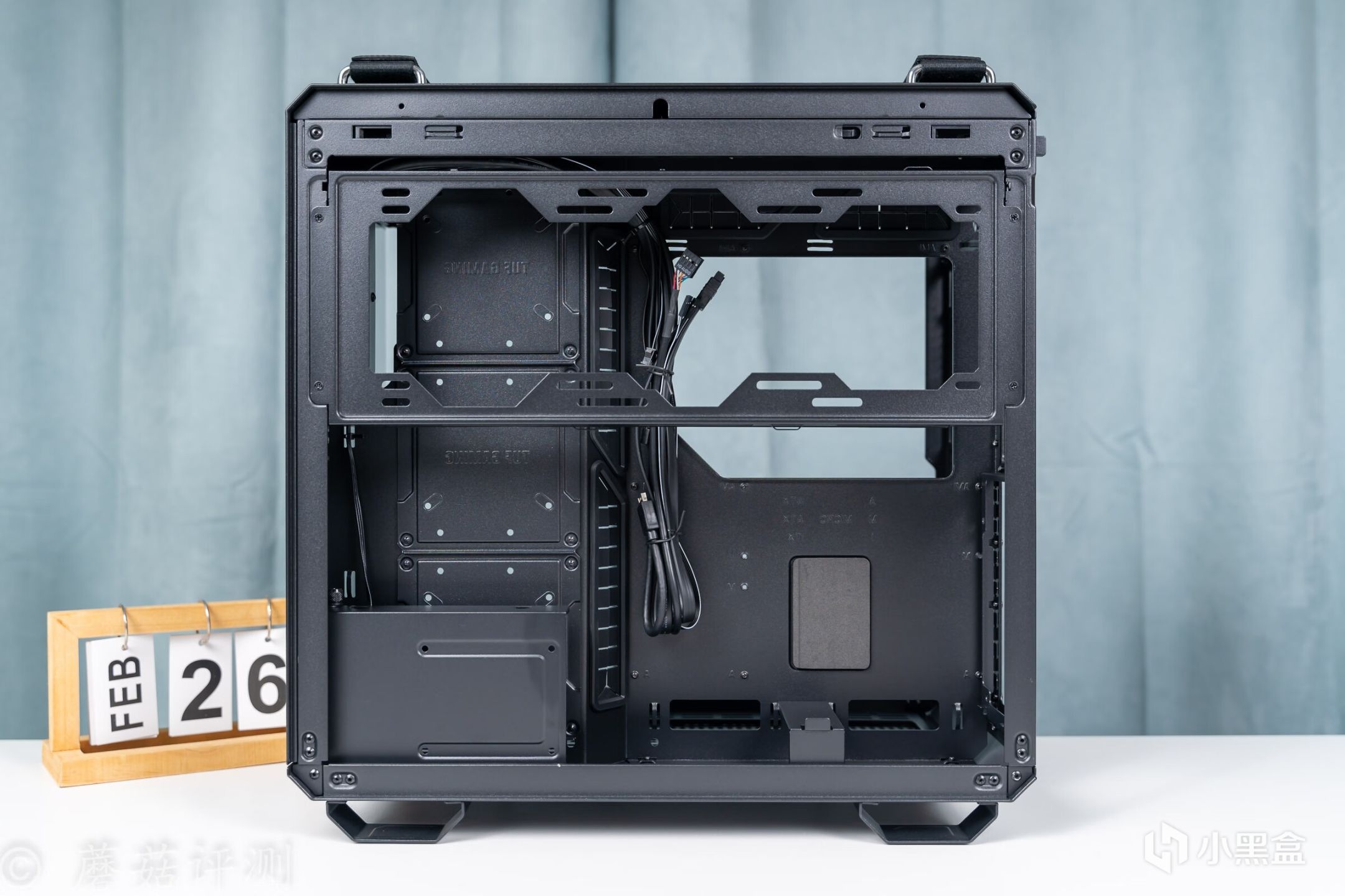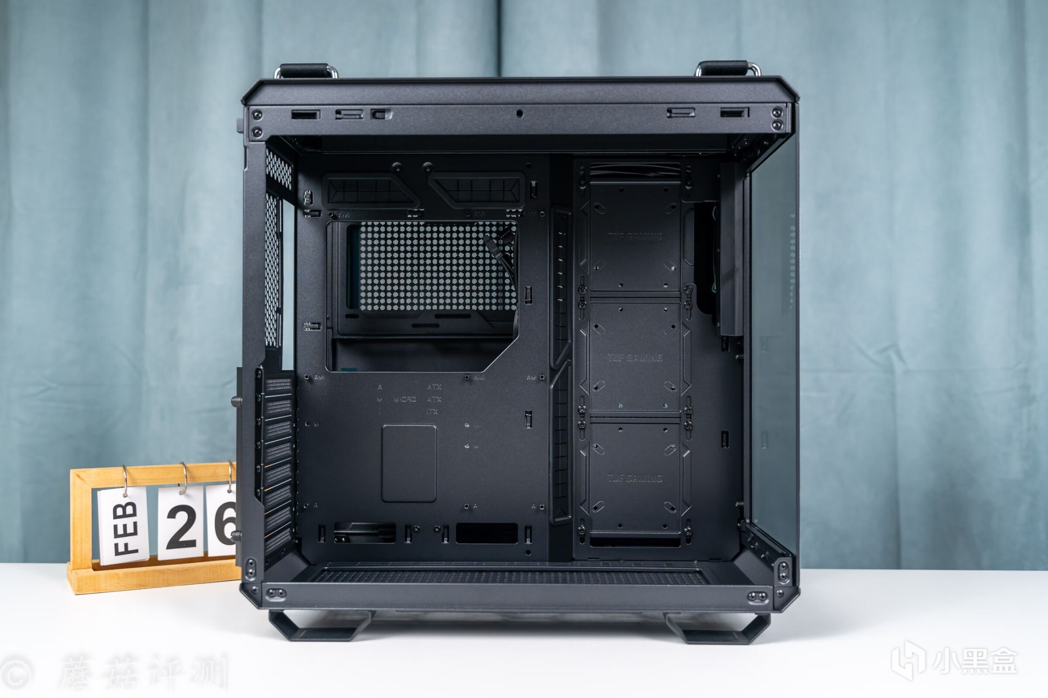 ▼机箱内部的空间很大,顶部和侧面均有风扇和水冷排的固定位置。