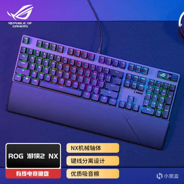 ROG游侠2 104,这款键盘是ROG在上一代游侠的基础上升级而来,最大的区别是增加了手托和多功能滚轮,并对外观做了一些优化。根据搭载的轴体不同分为RX光轴版和NX机械轴版,RX轴在一众光轴中的手感是非常优秀的;新发布的NX雪武白轴和NX冰暴灰轴也是备受好评的两款轴体。如果预算不足的话,上一代游侠价格要便宜一百多,活动时期可以做到500元以内入手;ROG游侠2 104的价格目前是699,叠加上大眼睛的品牌信仰,也还可以接受。