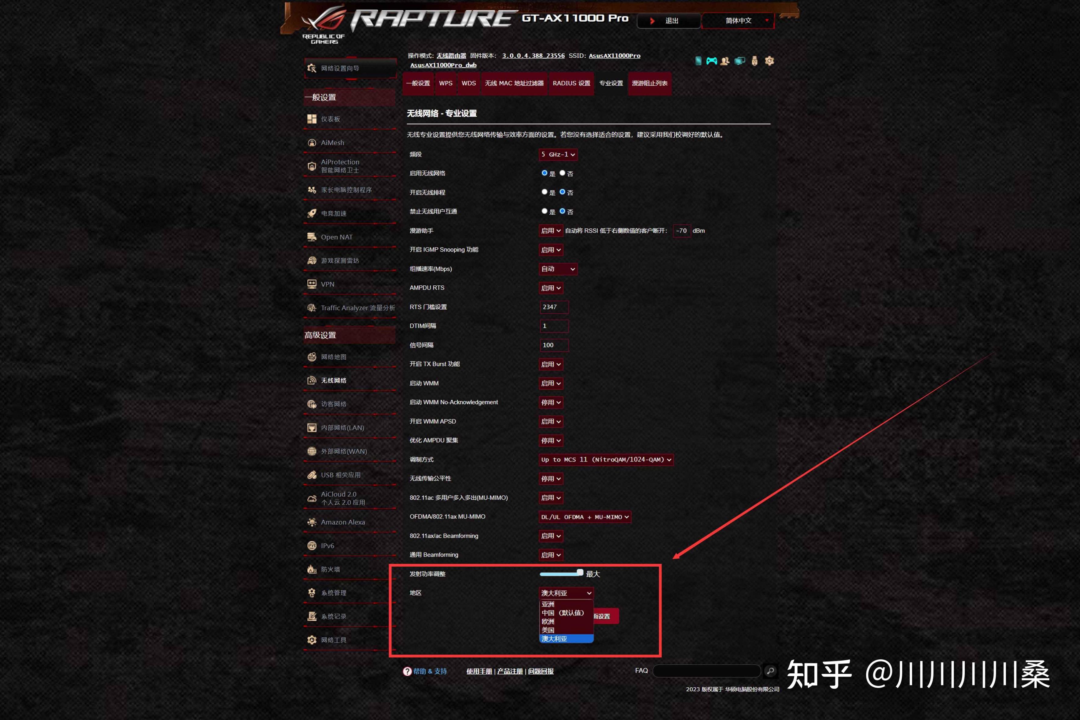 第一是澳大利亞模式,如果無線覆蓋不了目標區域,可以嘗試開啓射頻最大的澳大利亞模式,開啓入口在無線網絡中的專業設置中。