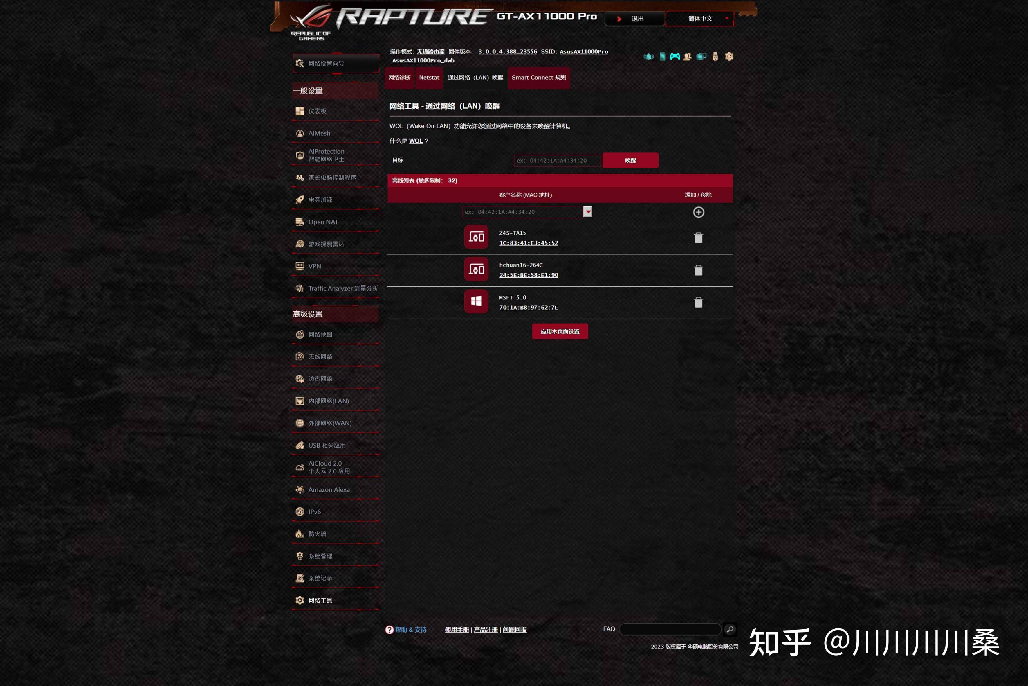 最後是網絡喚醒,電腦和其他設備只要支持並開啓WOL,綁定後即可通過華碩路由器App遠程開機,華碩App也能設置,個人覺得操作沒PC端方便就是了。