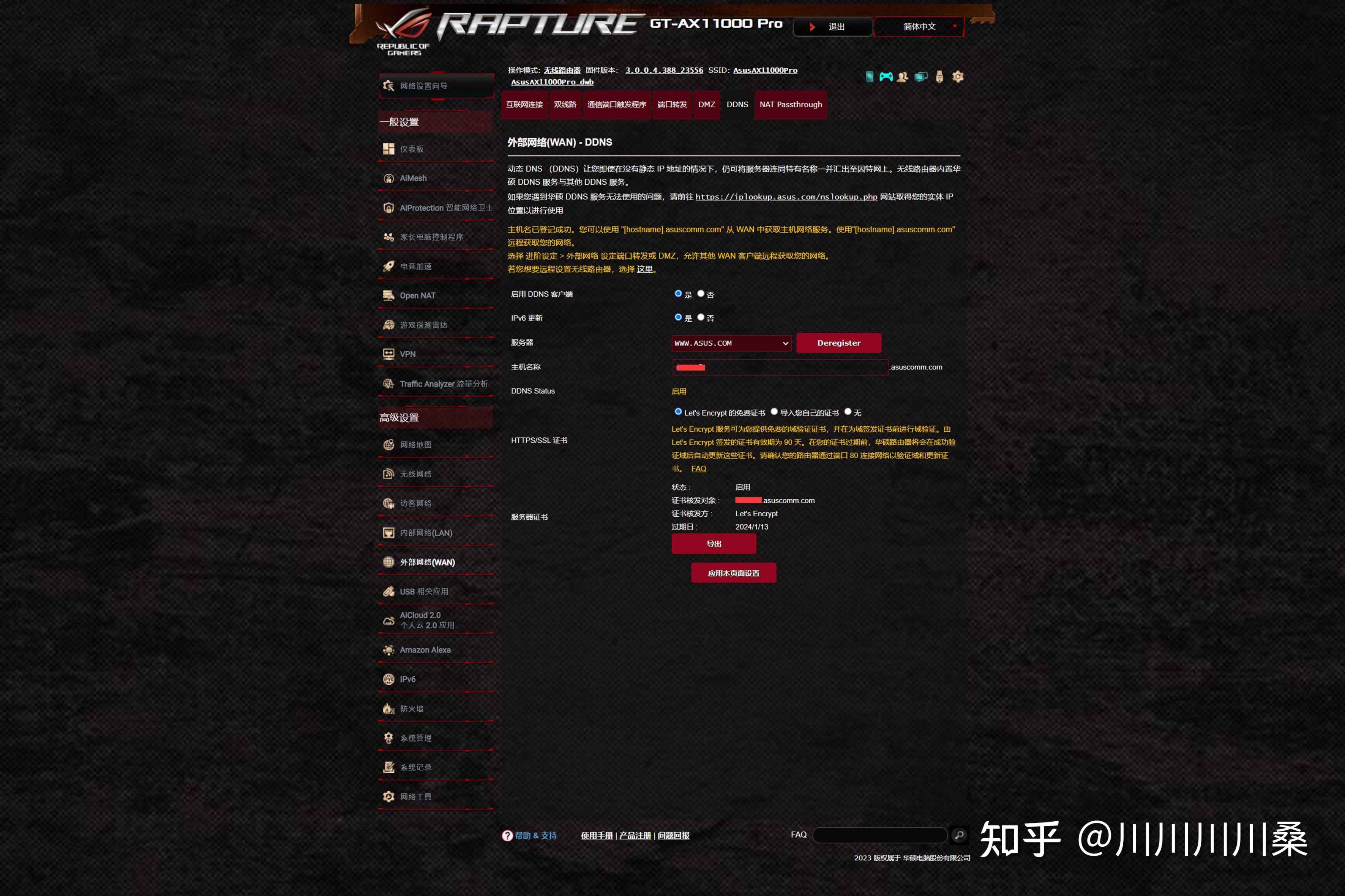 第三是DDNS,和手機App默認的內網穿透不同,外部網絡訪問網頁端路由器後臺得用域名或者IP+端口號的方式,在外部網絡的DDNS頁面開啓配置即可,免費的,該域名除了可以訪問路由器後臺,有IPv4協議公網IP的話還可以搭配端口轉發綁定下聯的NAS和電腦。