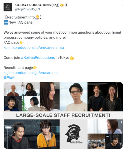 如此大规模的人员扩充,这或许预示着小岛秀夫所创办的小岛工作室可能要加快自己旗下的游戏制作速度了。
