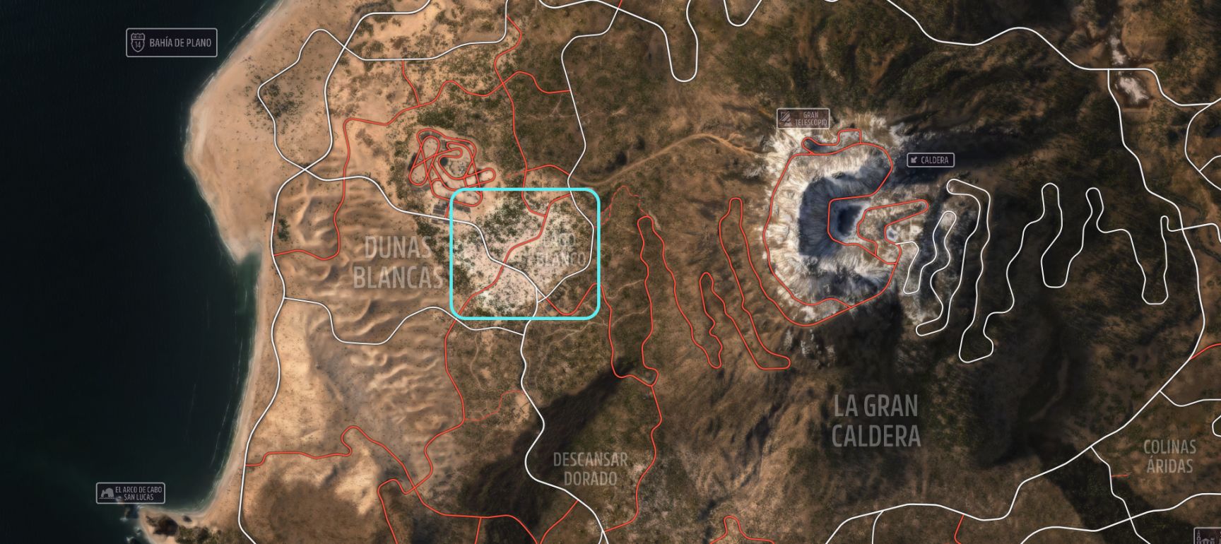 “白色沙丘”的範圍見上圖,袋鼠技術:10 秒內達成 3 次空中飛車技術,簡稱一直跳。