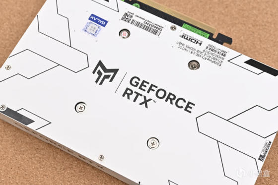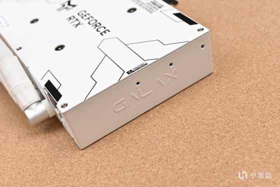 显卡末端阳刻 GALAX Logo 标识。侧面螺丝孔可以安装显卡支架使用。
