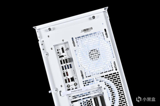 机箱尾部上方左侧为主板 I/O 接口,右侧是 120mm 风扇位。