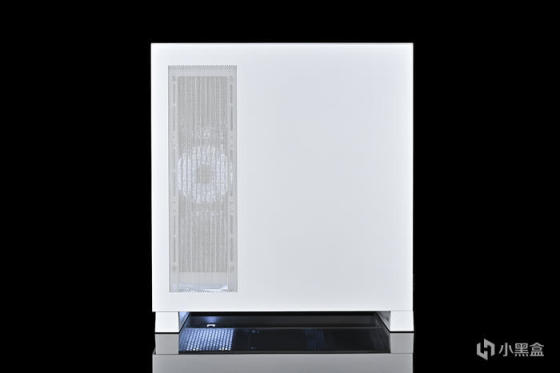 下方为 ATX 电源安装位,倾斜设计,方便进气通风。左侧还有一个屏幕桌面开关改装穿线孔,提供更方便的空间穿线优势。
