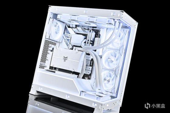 其他硬件方面,显卡来自影驰 GeForce RTX 4090 金属大师 AIO OC 24GB,采用全新设计的外观设计,这是影驰首款 AIO 液冷显卡,采用全新设计的寒雾星液冷系统(AIO 360),由集成高效静音水泵的显卡本体+360mm 冷排构成,纯白底色正面和背板。采用 18+4 相全贴片数字供电,14 层 PCB,安全且兼顾散热,性能更稳定;固态硬盘来自影驰 HOF EXTREME 30 M.2 PCIe 4.0 2TB,连续读写 7000/6500 MB/s,采用优选 3D NAND 颗粒,群联 PS5018-E18 主控,内部集成智能温控和第四代 LDPC 数据纠错机制,数据更安全,功耗更低;内存搭配使用了宇瞻 Zadark Spark RGB DDR5 6000 32GB(16GBx2),专利五段式超广角灯效,支持 intel、AMD 双平台;电源来自追风者 AMP GH 1000 ATX3.0 Whtie 白金全模组,全日系105°C耐高温电解电容和固态电容,采用针脚与高密度铜柱在 PCB 上达成无导线连接技术,减少电源内部导线,提高连接可靠度,增加散热引流面积,延长零件使用寿命。通过 80PLUS 白金牌认证,转换效率达到 94%,支持 ATX3.0 规范,原生PCIe 5.0 接口及纯白扁平模组线材;散热器来自追风者Glacier One 360 D30 Whtie,搭载高性能水泵,高耐久减震马达,持续稳定工作达 100000 小时,一体式 ARGB 冷头光效炫酷并支持方向调节,配备 D30 风扇兼顾颜值和散热效能;风扇来自追风者 D30 120 White 以及 D30 120 Reverse White(反叶),以自家 T30 外观设计为基调,延续 T30 的 30mm 厚度大倾角叶片设计,带来更强的空气压力,保持更好的排风效果,增加 ARGB 元素,无线拼装安装模式,反叶的正面无框让风扇更加绚丽美观 ;附件同样来自追风者 Vertical GPU Bracket PCIe 4.0 x16 220mm 延长线、支架套装,采用 EMI 防电磁干扰设计,对传输速率无影响,使用支架安装,显卡距离玻璃较远,散热风道更好。好了,介绍这么多,下面进入装机环节。