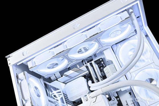 水冷排安装 3 颗追风者 D30 120 White(反叶)灯效展示。