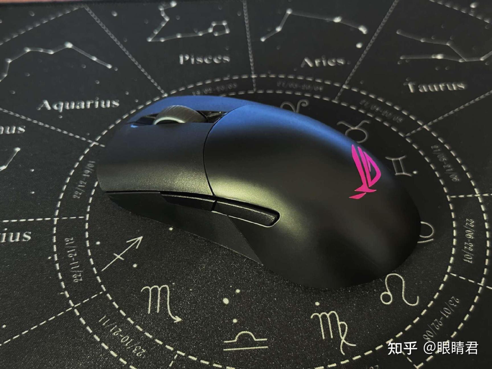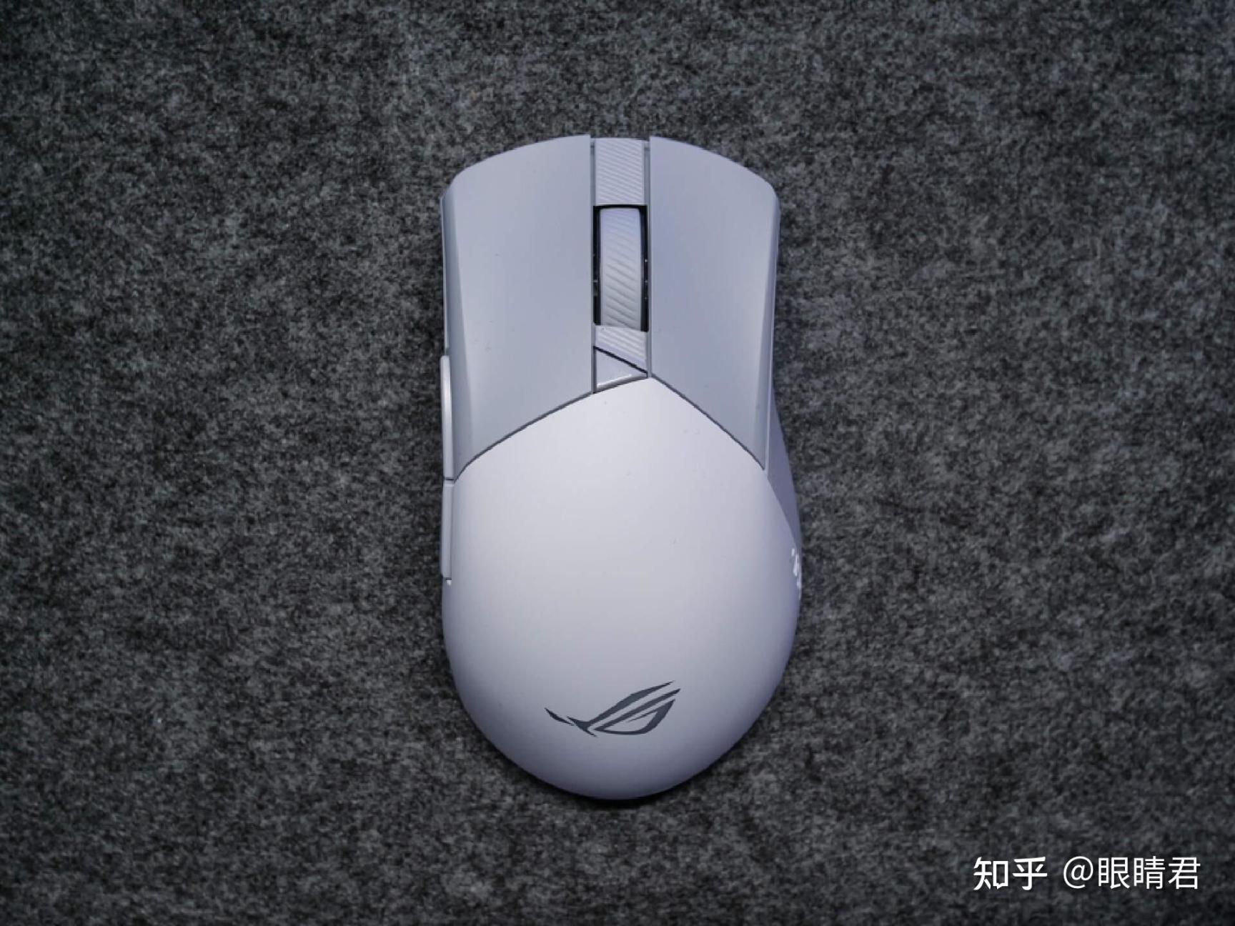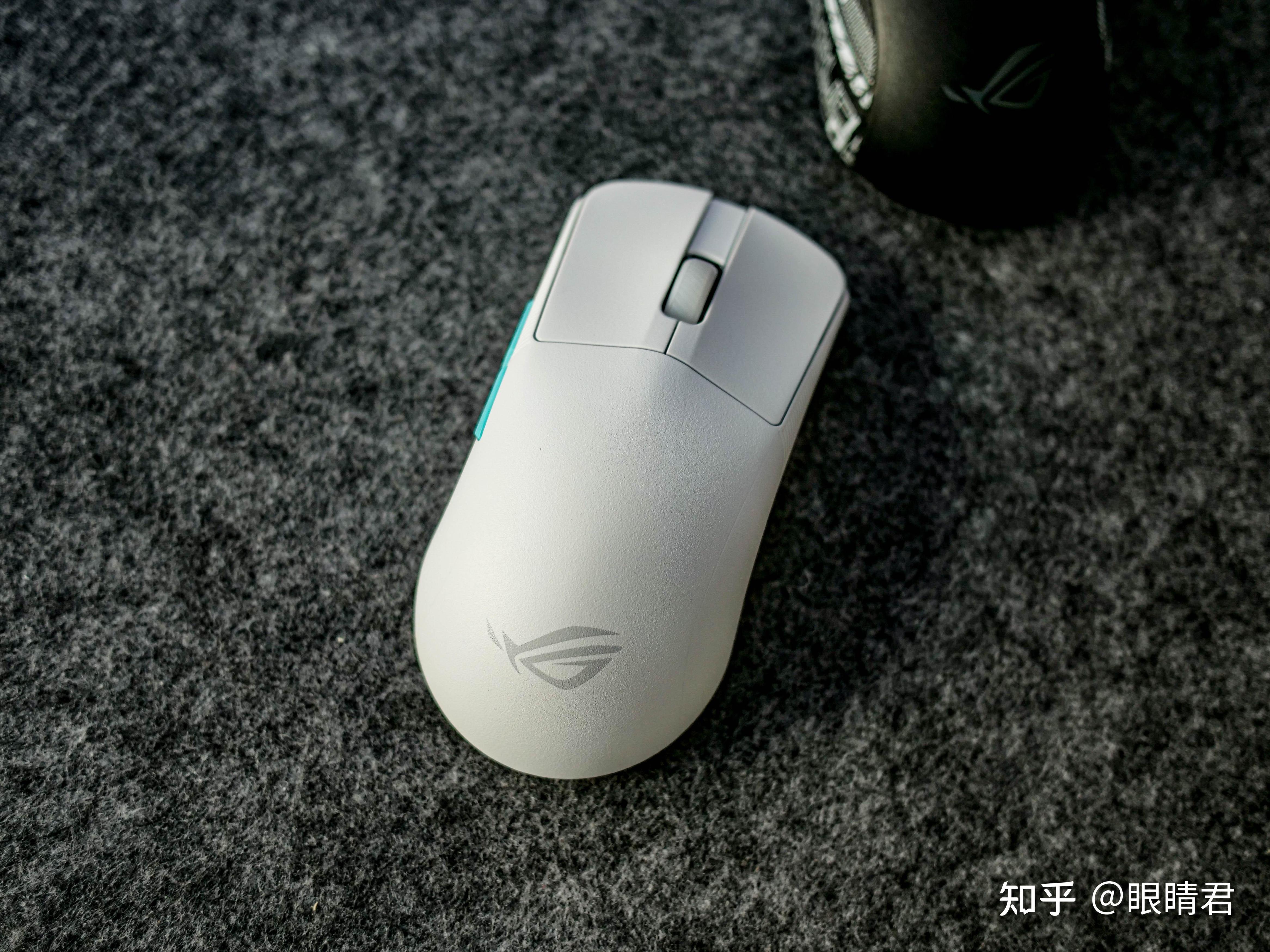 目前个人在用款,54g轻量化设计,127.5mm*63.7mm*39.6mm的尺寸,对称式设计,我中等手掌从GPW换过来基本没有不适感,趴握使用下按键部位跟手指更贴合,搭配ROG鼠标标配的图腾贴纸,手感要更好一些。