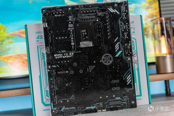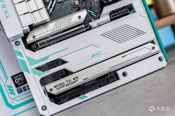 PCIE區域都是全覆蓋裝甲,1個金屬加固的PCIE5.0 X16插槽,3個M.2的底部散熱片上還有BORN TO BE DIFFERENT的slogan