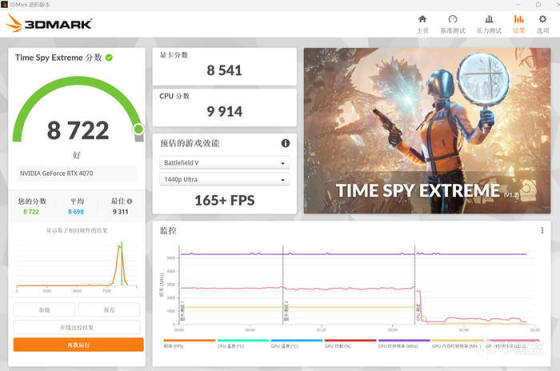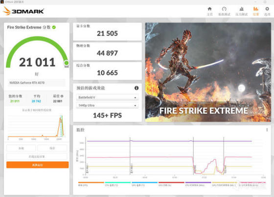 最後,展示一下13700KF+天選TX GAMING B760-BTF WIFI+華碩 TX RTX4070 O12G BTF GAMING的各項測試成績,首先是3DMARK作爲參考:
