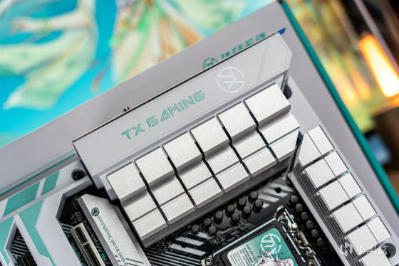 主板採用的12+1 DrMOS 供電模組和銀色散熱片,白色裝飾面,非常清爽