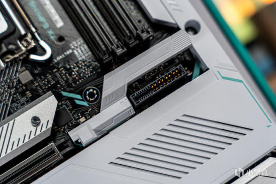 主板上背插2.0的SEALTH CONNECT 顯卡接口與白色的顯卡易拆鍵,安裝與理線都簡便了