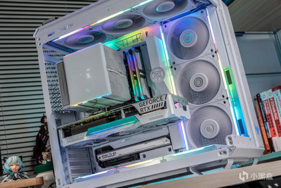 天選TX RTX4070 O12G BTF GAMING 顯卡在天選TX GAMING B760-BTF WIFI主板的背插狀態,安裝到GT502備置版機箱中的全景,這個已經是機箱內無線的狀態,非常清爽