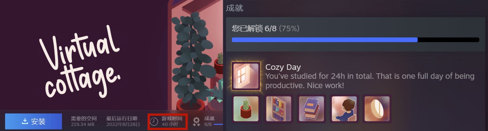 其实比起说它是游戏,它更像是一个实用工具,一个带给你惬意氛围的虚拟空间或虚拟自习室,在这舒适惬意的画面中,听着篝火声和纯音乐,专注与自己的事情。或学习、或阅读、或创造,但是你的Steam好友却会觉得你在打游戏我简称其为内卷神器