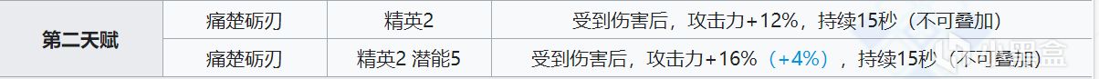 第二天賦每次觸發都可以持續15秒,如果在持續時間內再次受傷,則可以刷新持續時間,這一點挺合理的,但是第二天賦沒辦法疊加,這就讓人有些難受了。