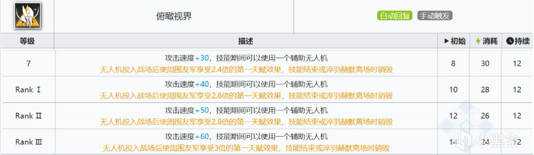 淬羽赫默開啓2技能利用無人機可以進行12秒的全圖支援,而無人機擁有三倍的天賦,使攻擊範圍內的友軍獲得30%的庇護,低於30%生命時獲得72%的庇護,非常誇張。