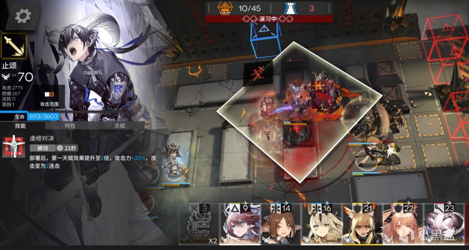 總而言之,止頌的2技能由於2連擊的原因,屬實很有潛力,可玩性也很強,部分高物抗高法抗的精英怪是異德、夜刀都切不動的,此時止頌就能重拳出擊。
