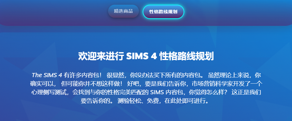 《模擬人生4》遊戲本體已於10月18日正式轉爲免費遊戲,在遊戲中,玩家將進入一個無拘無束的虛擬世界,享受創造和控制人生的奇妙力量。不過,請警惕消費主義陷阱,畢竟遊戲幾千元的DLC可不是跟你開玩笑的!與此同時,在Steam《模擬人生4》活動頁面參與“性格路線規劃”活動,玩家即可獲得動畫貼紙一張。