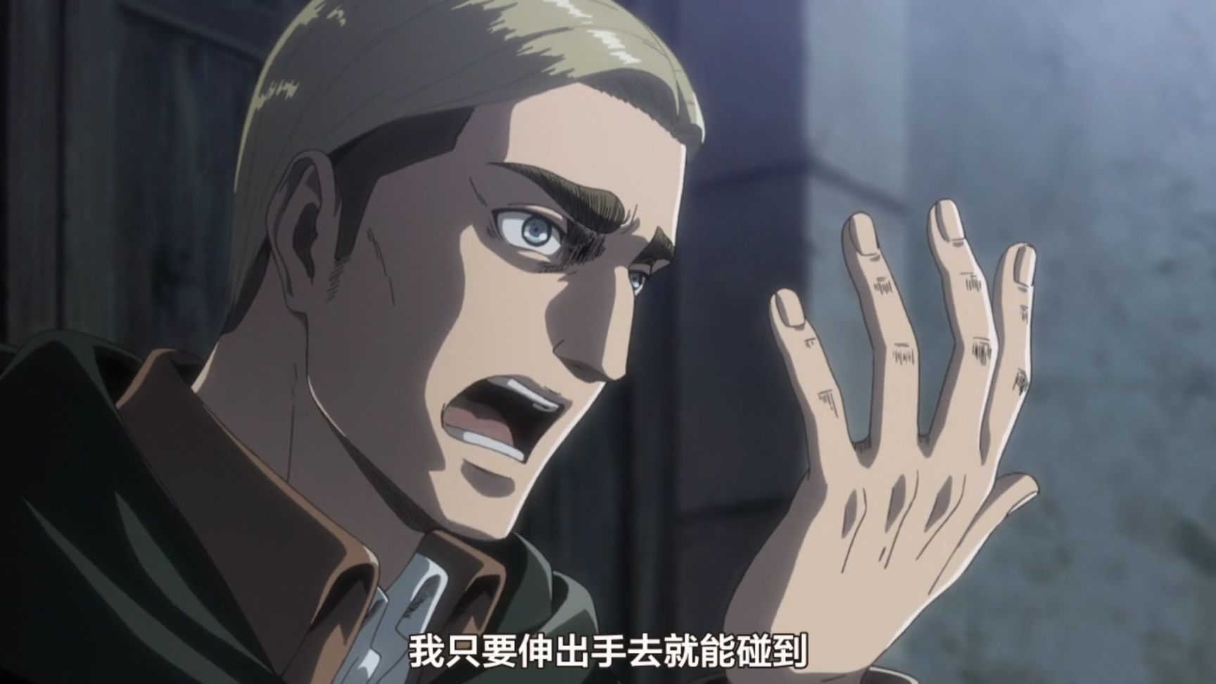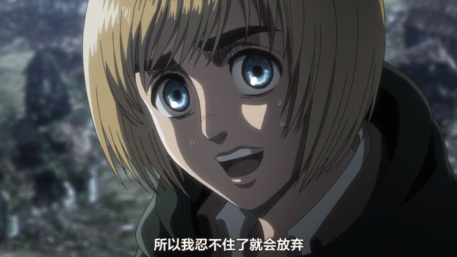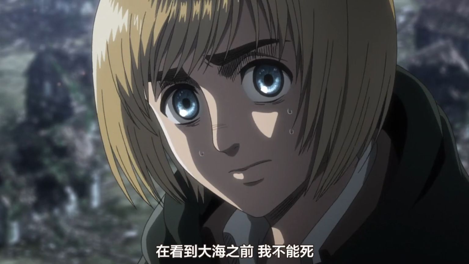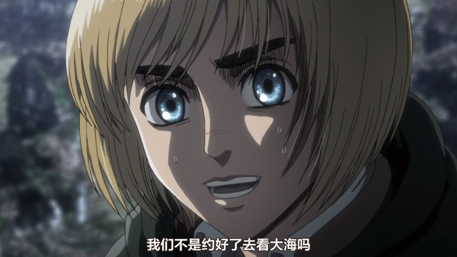 没想到刚爽过没几秒,接下来就是爱尔敏为了胜利愿意放弃自己一直以来想去看海的梦,牺牲自己,甘当诱饵,忍受被热浪侵蚀的痛苦,以此来消耗完超大型巨人能够产生热浪的肌肉,以帮助艾伦能够接近超大型巨人,并成功切下其后颈肉。真是刀子一把一把从天降,刀刀插在心中间。