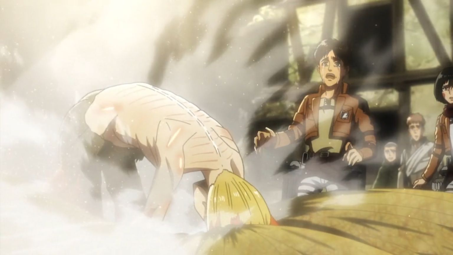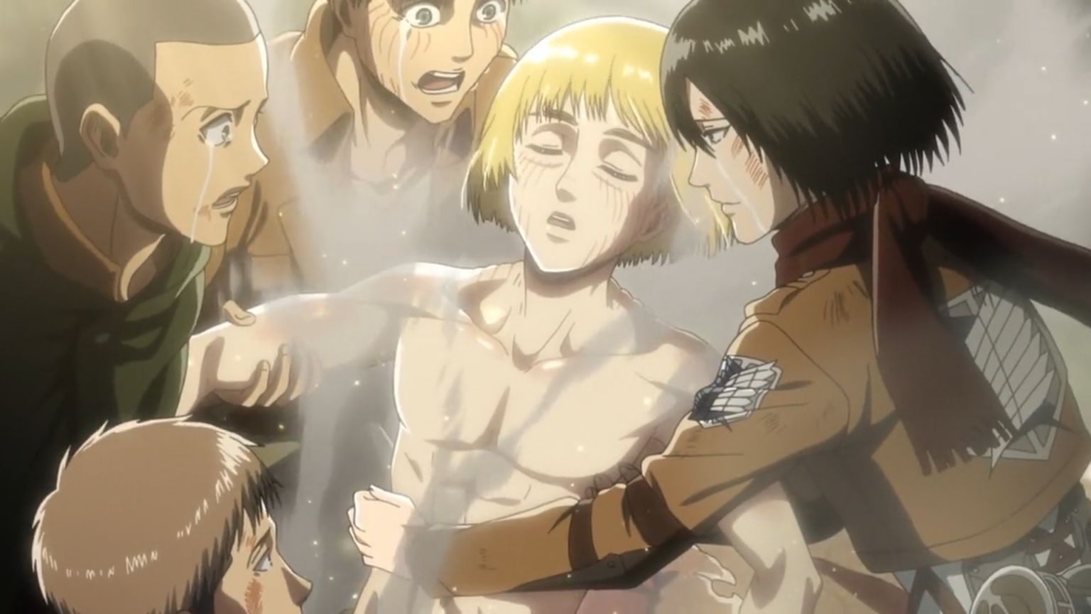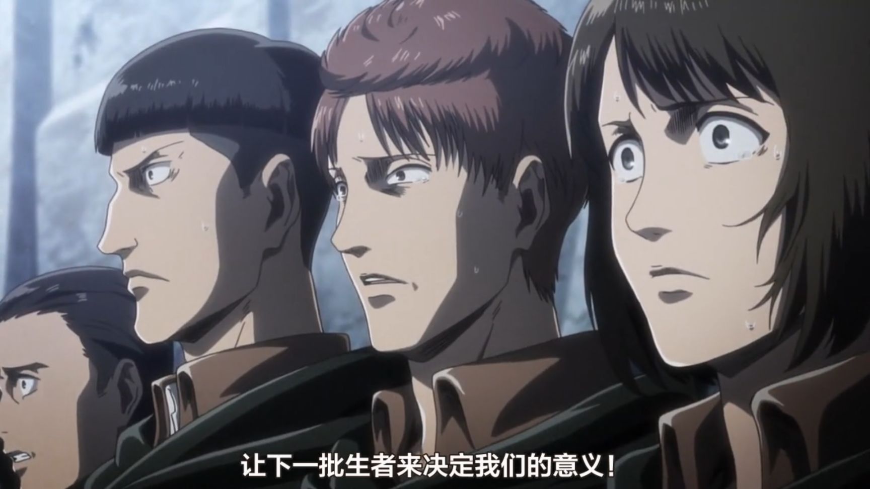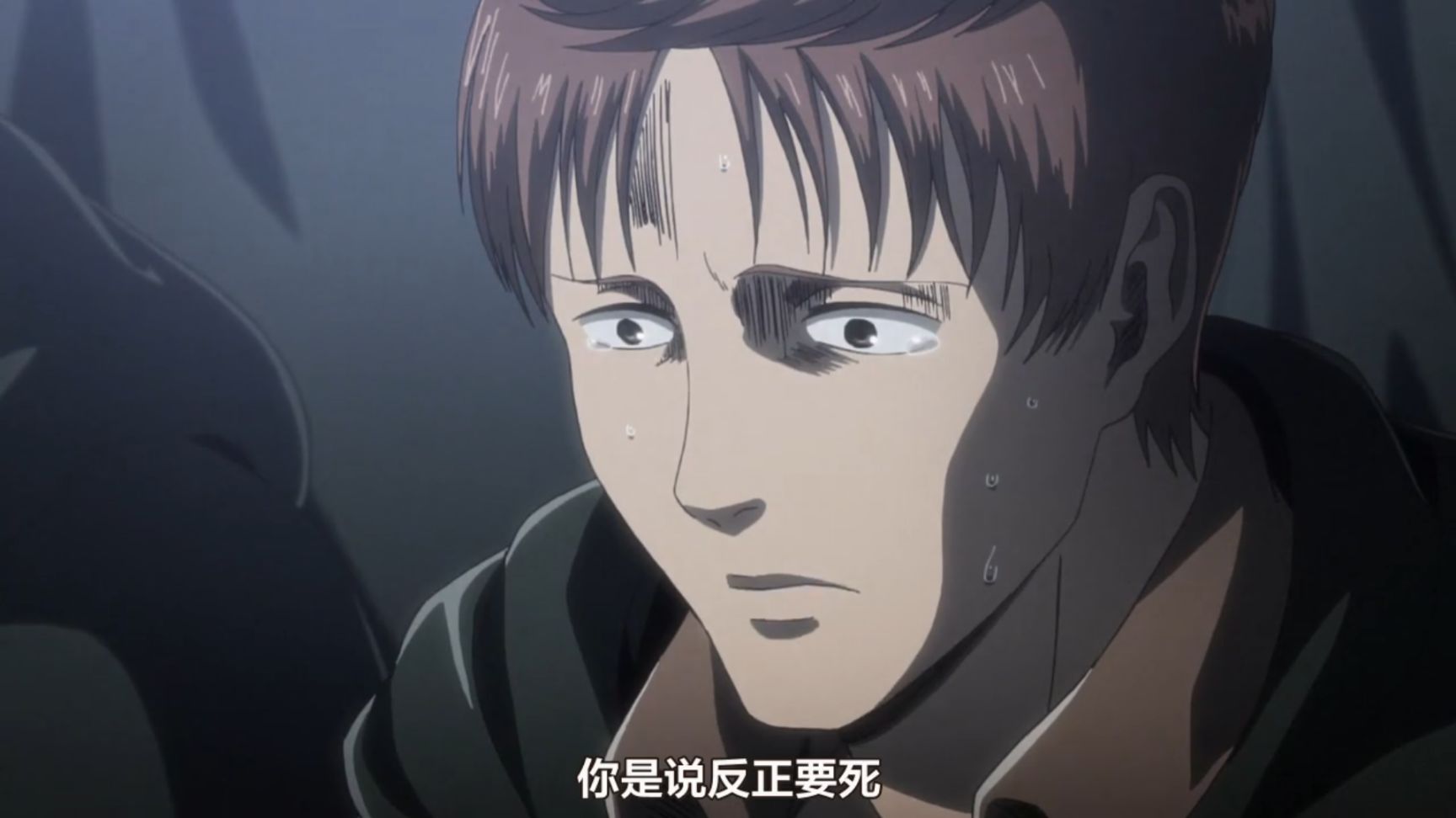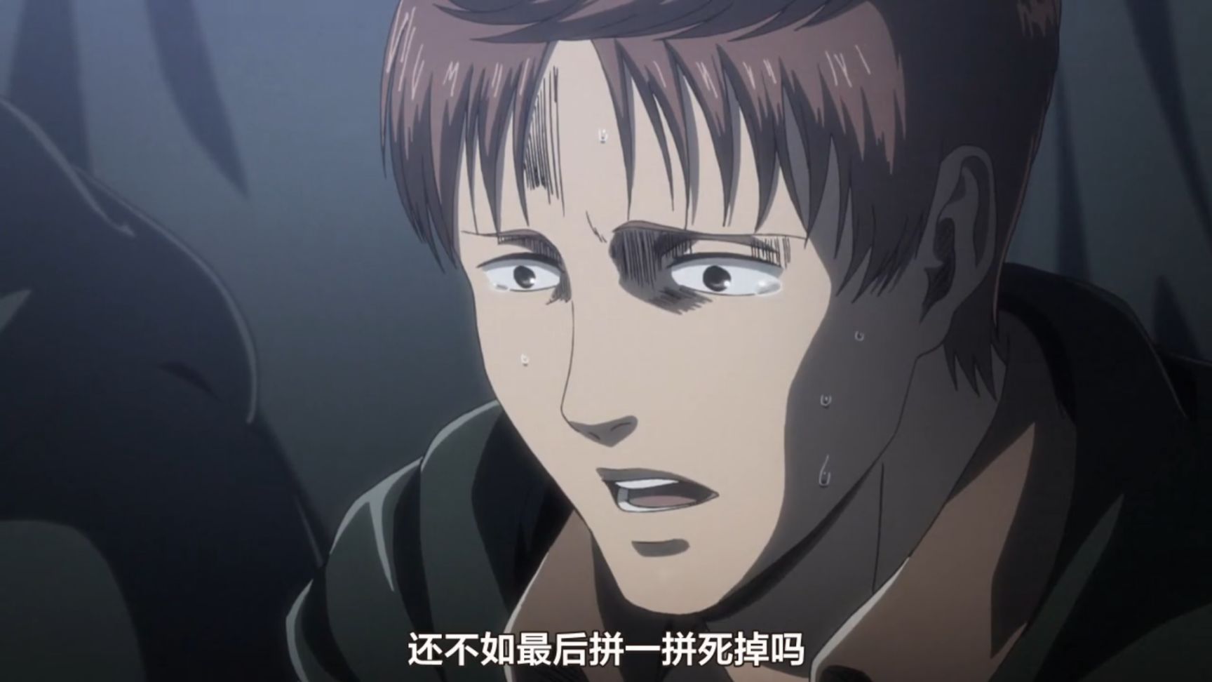 没想到刚爽过没几秒,接下来就是爱尔敏为了胜利愿意放弃自己一直以来想去看海的梦,牺牲自己,甘当诱饵,忍受被热浪侵蚀的痛苦,以此来消耗完超大型巨人能够产生热浪的肌肉,以帮助艾伦能够接近超大型巨人,并成功切下其后颈肉。真是刀子一把一把从天降,刀刀插在心中间。