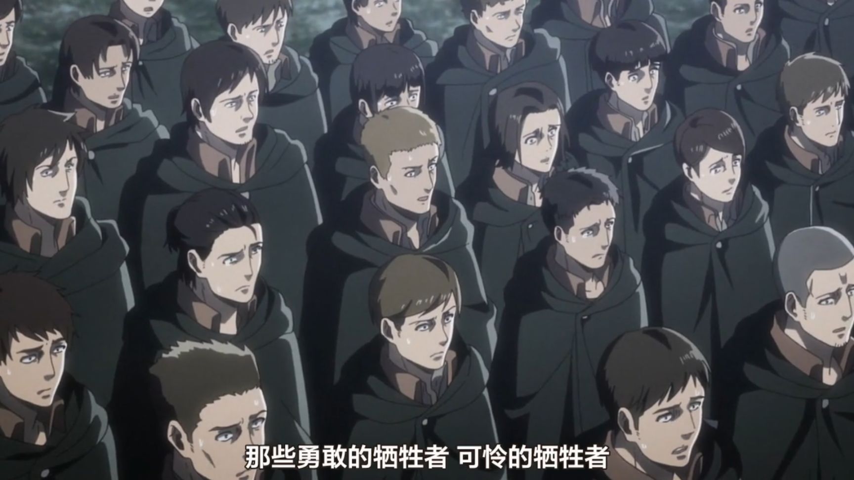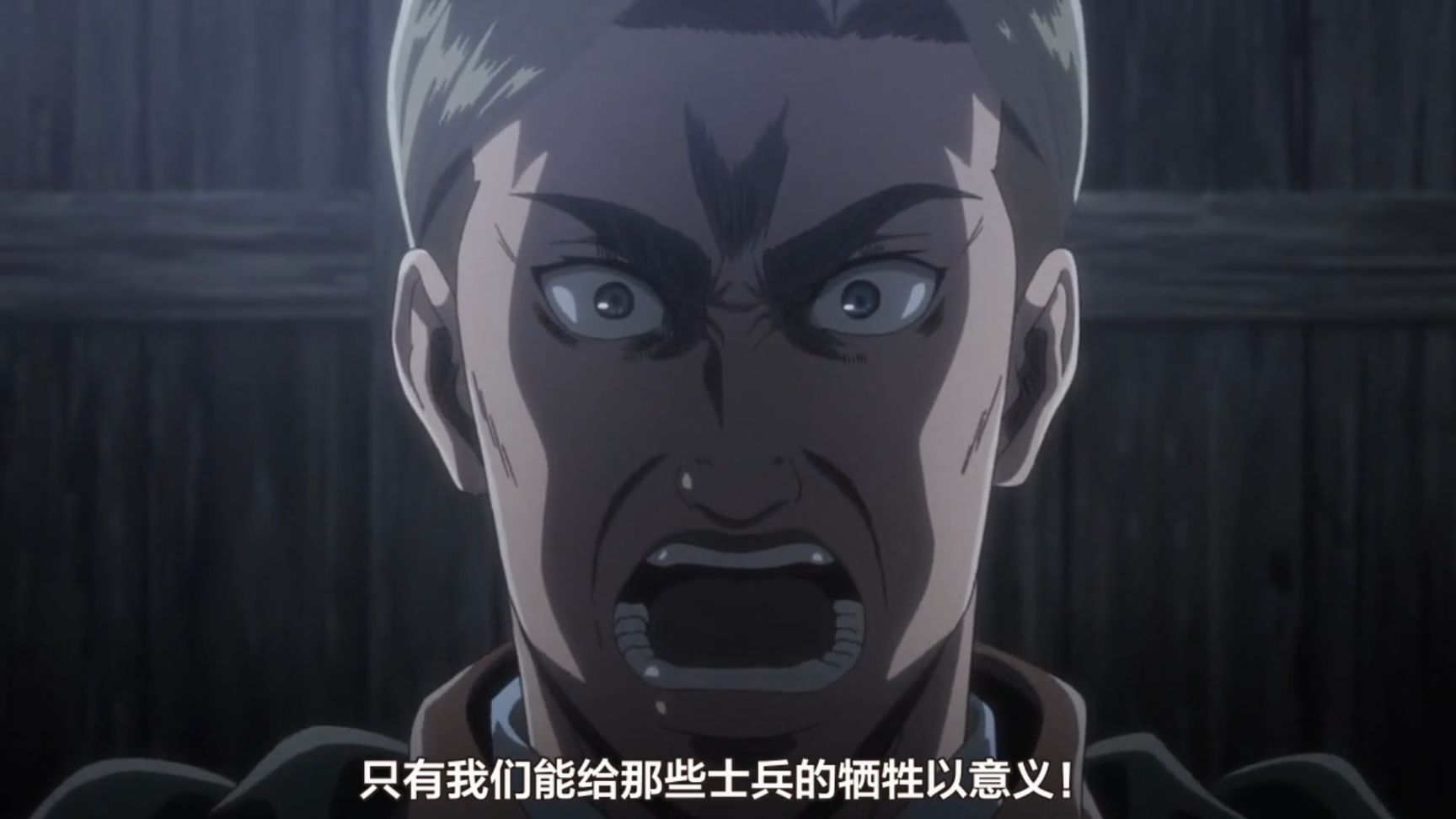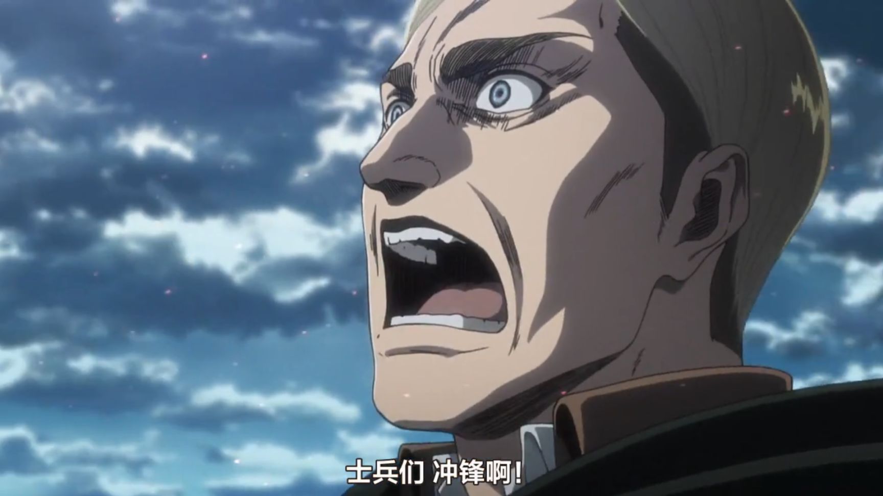 最感人,最悲壮还属艾尔文团长为了胜利,愿意放弃那一步之遥的梦想,带着调查兵团的士兵向前冲锋,自愿成为兽之巨人的活靶子,为利威尔兵长争取时间去接近兽之巨人。其所表现的大义,令人推崇备至。