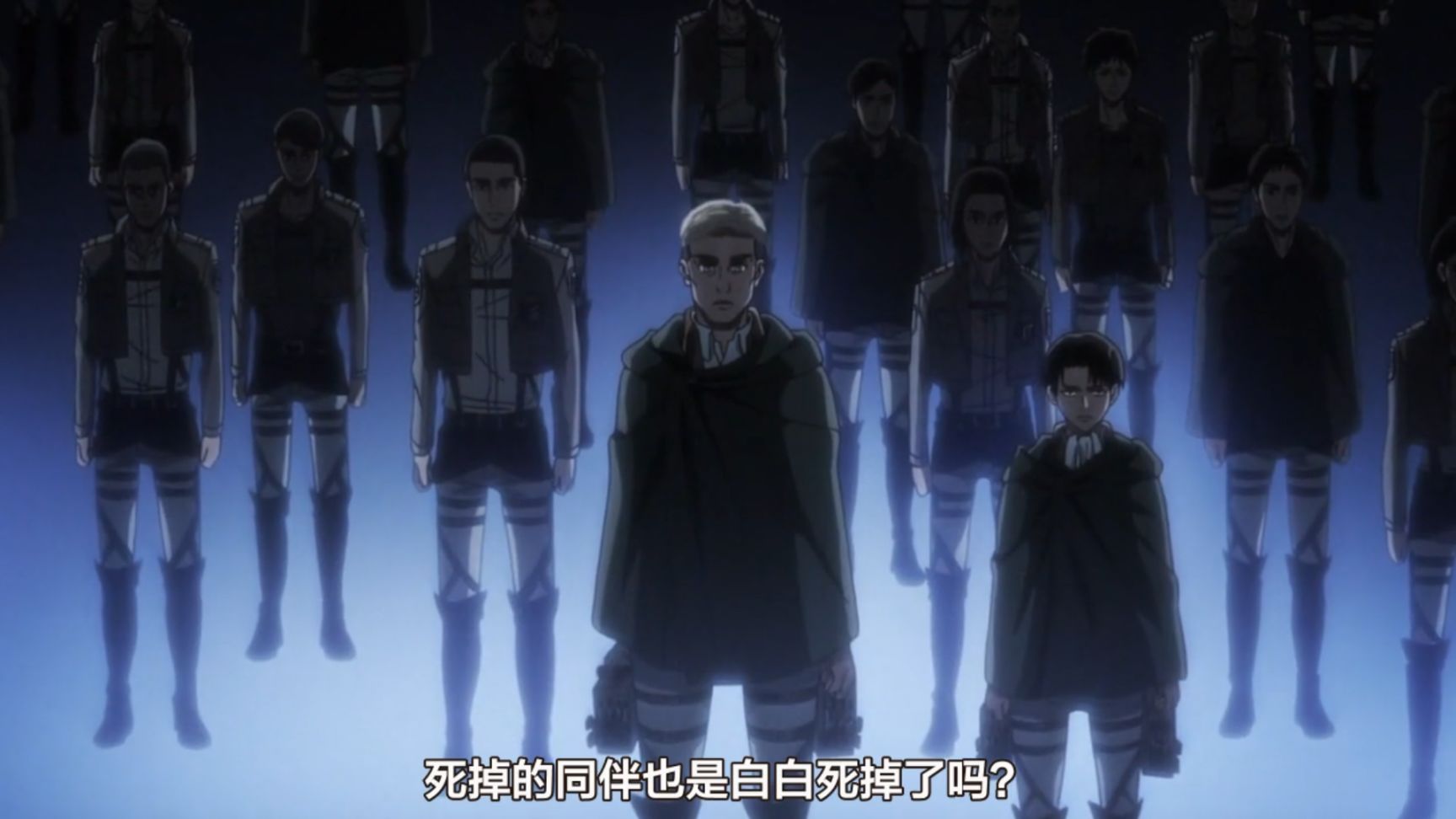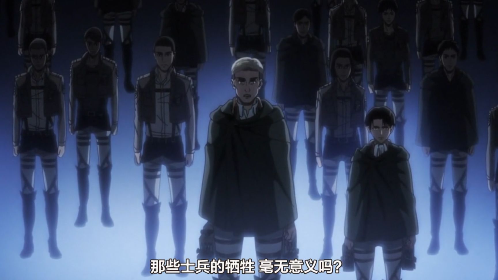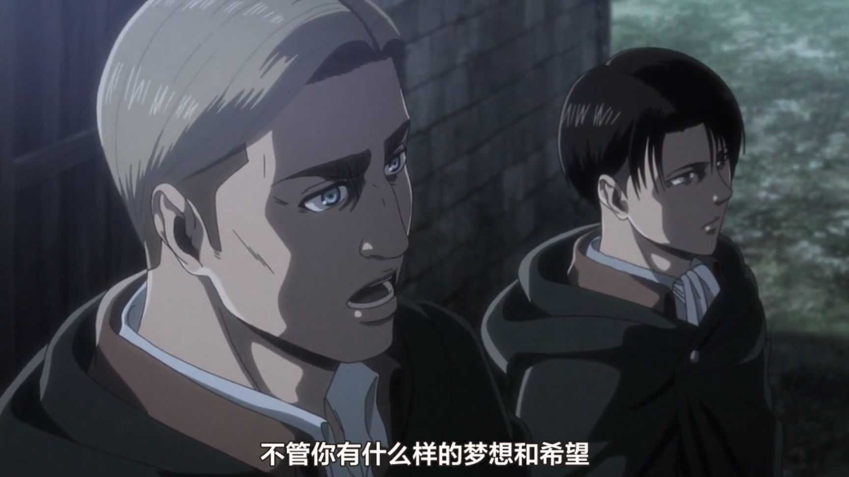 最感人,最悲壮还属艾尔文团长为了胜利,愿意放弃那一步之遥的梦想,带着调查兵团的士兵向前冲锋,自愿成为兽之巨人的活靶子,为利威尔兵长争取时间去接近兽之巨人。其所表现的大义,令人推崇备至。